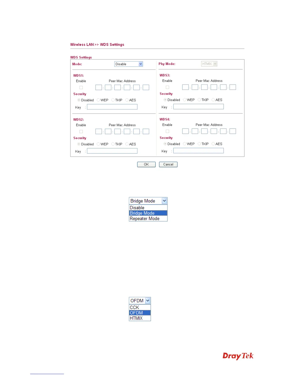 Choose the mode for WDS setting. Disable mode will not