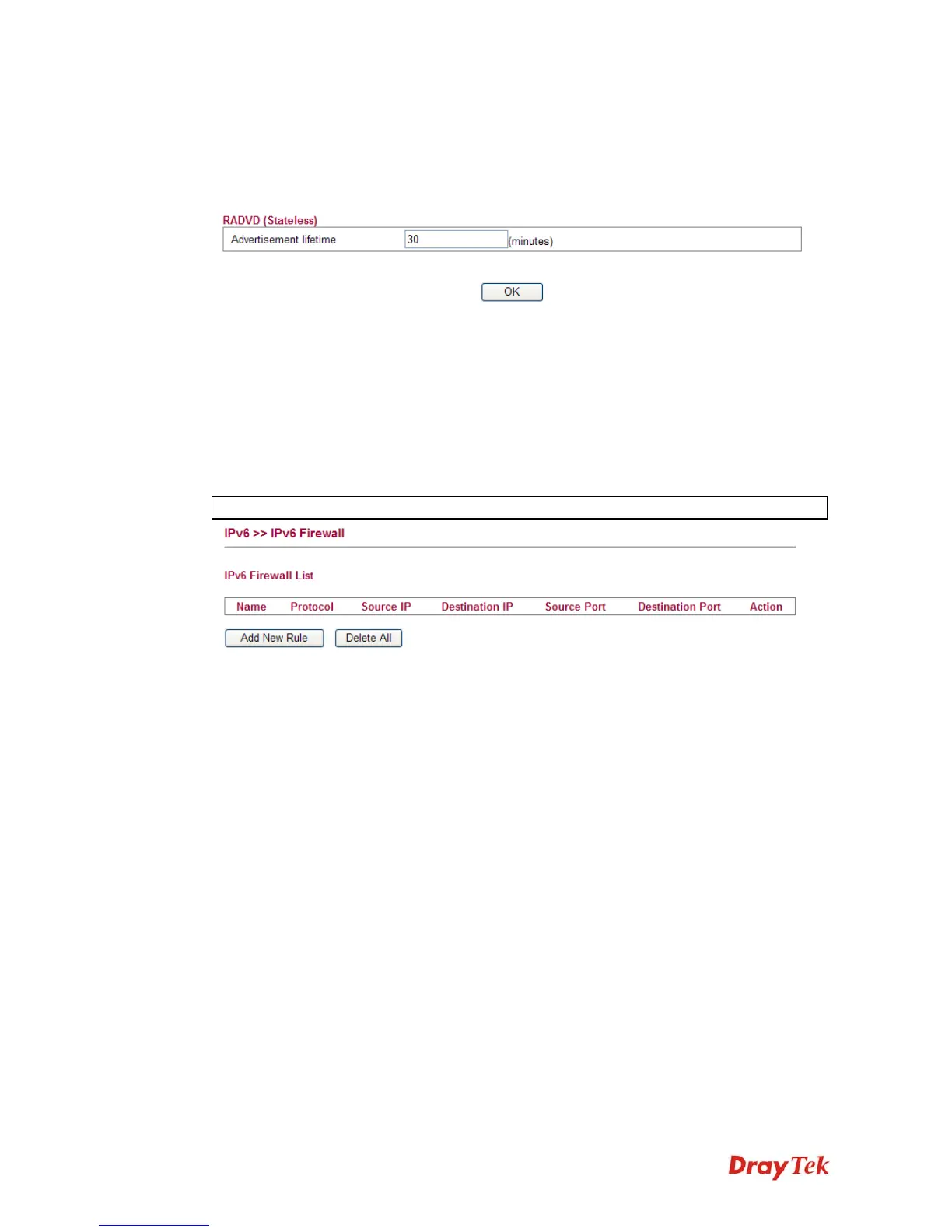 This page allows users to set firewall rules for IPv6 packets.