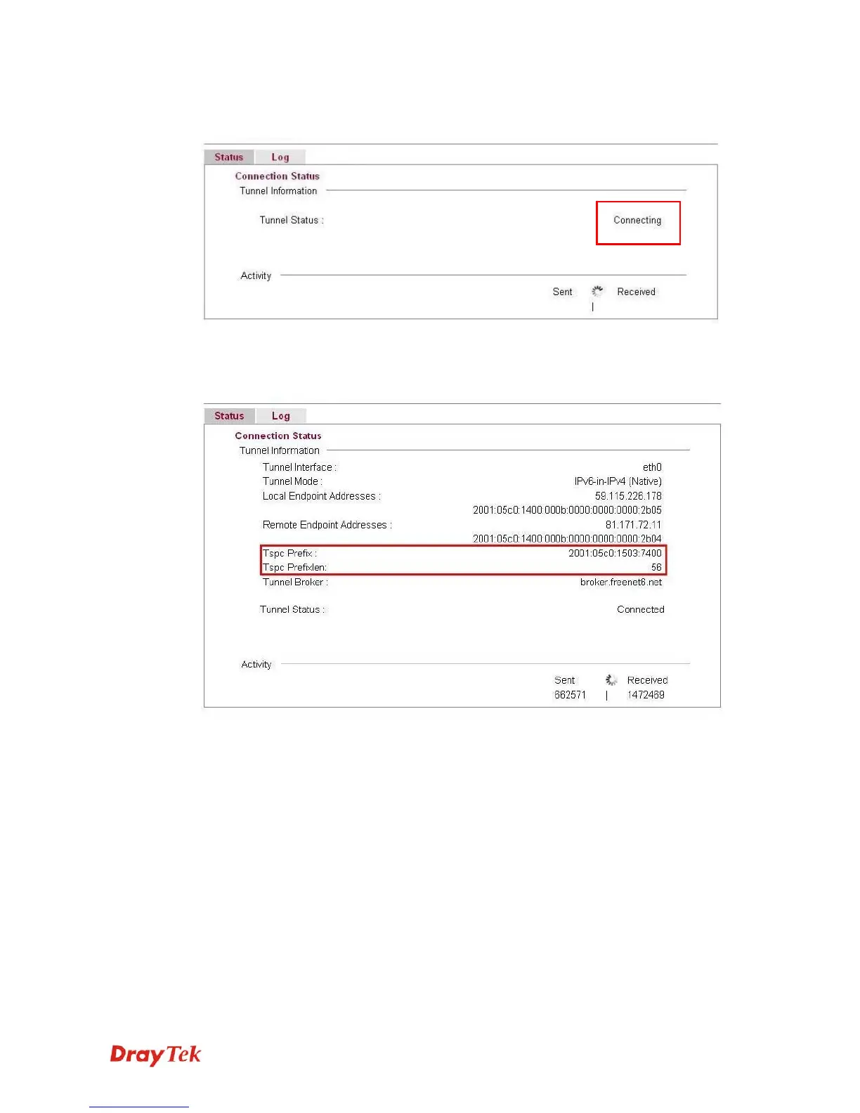 When TSPC configuration has been done, the router will start to connect. The connecting page