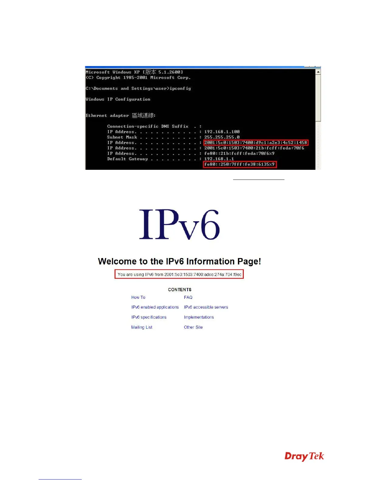 access Internet via IPv6 connection, your IPv6 address will be shown on the web page