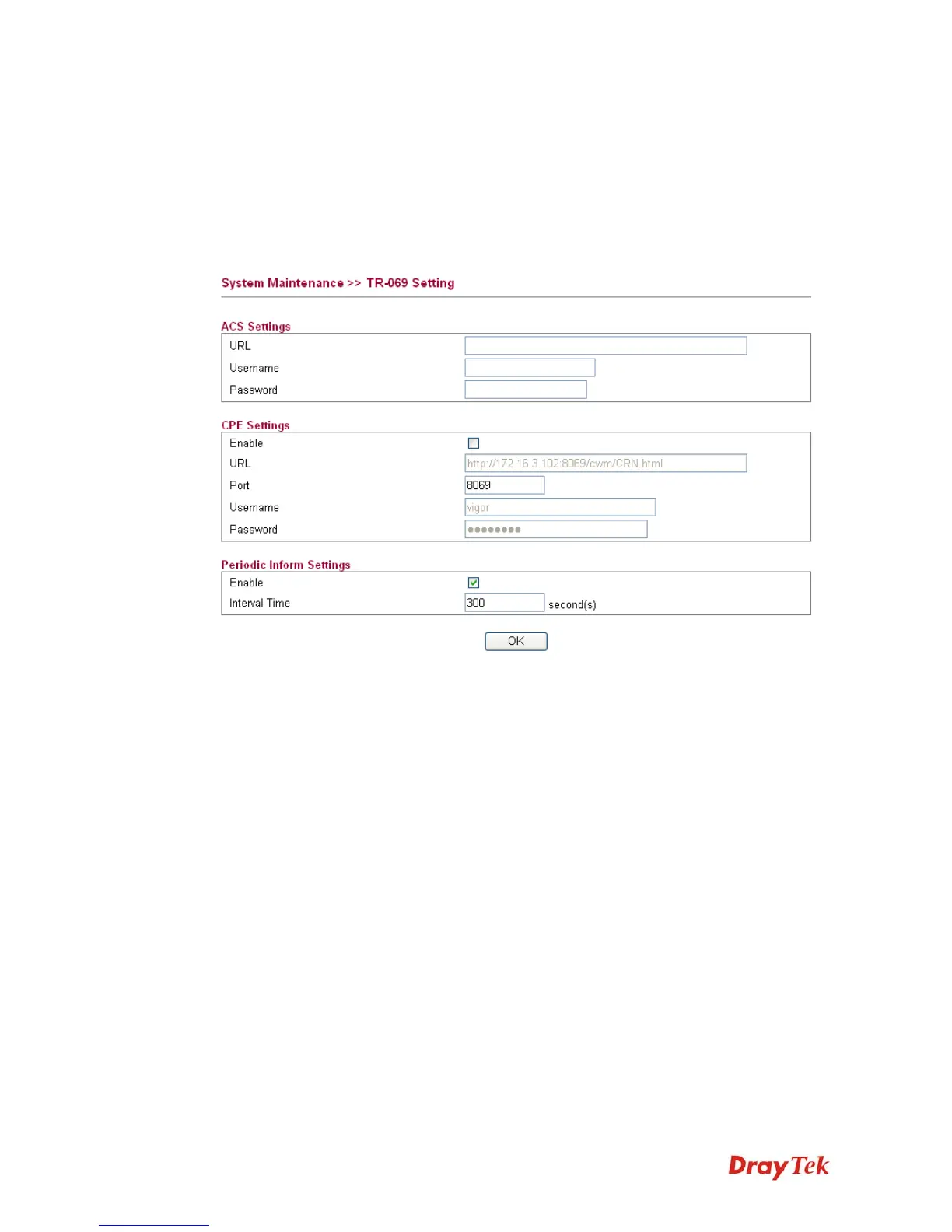 Vigor router with TR-069 is available for matching with VigorACS server. Such page