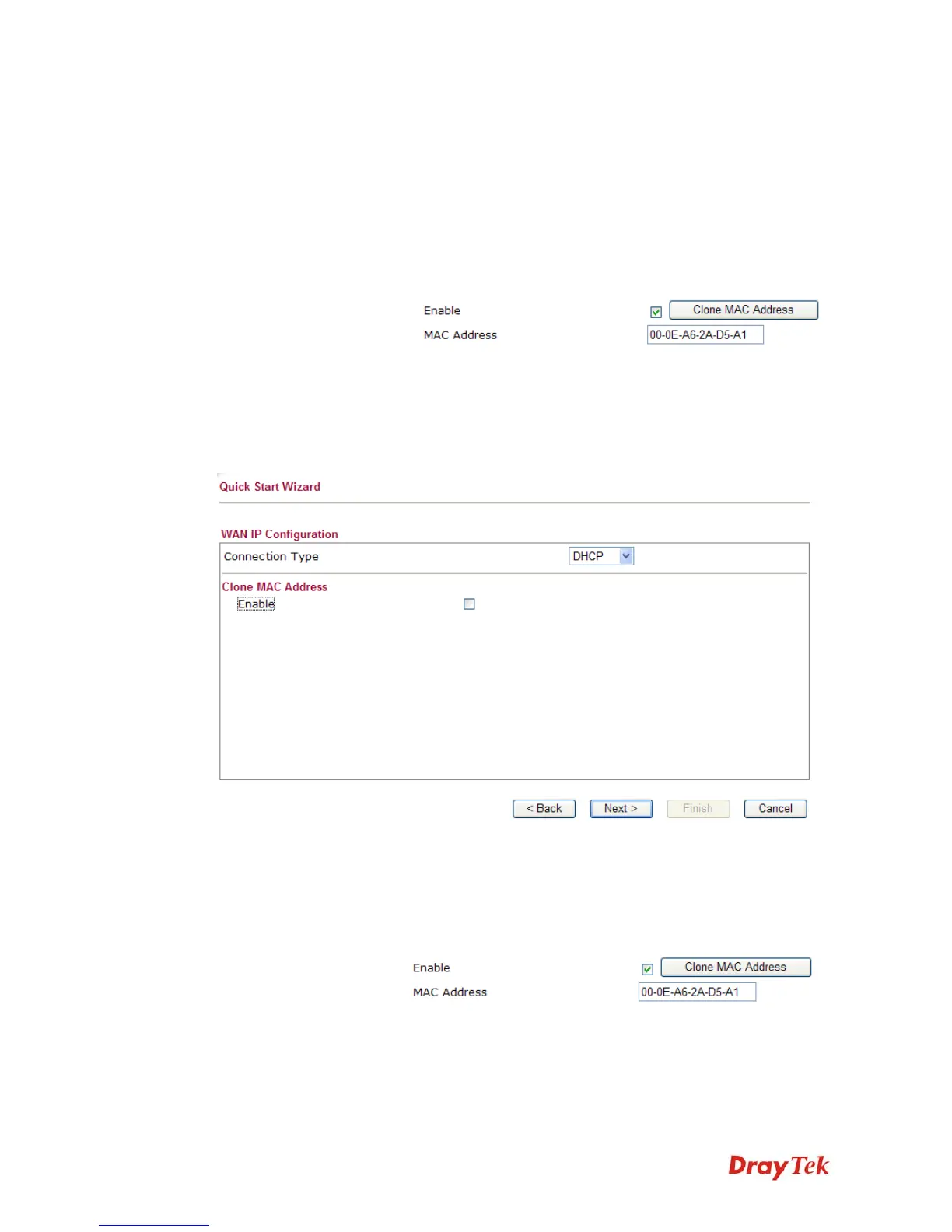 Clone MAC Address It is available when the box of Enable is checked. Click Clone