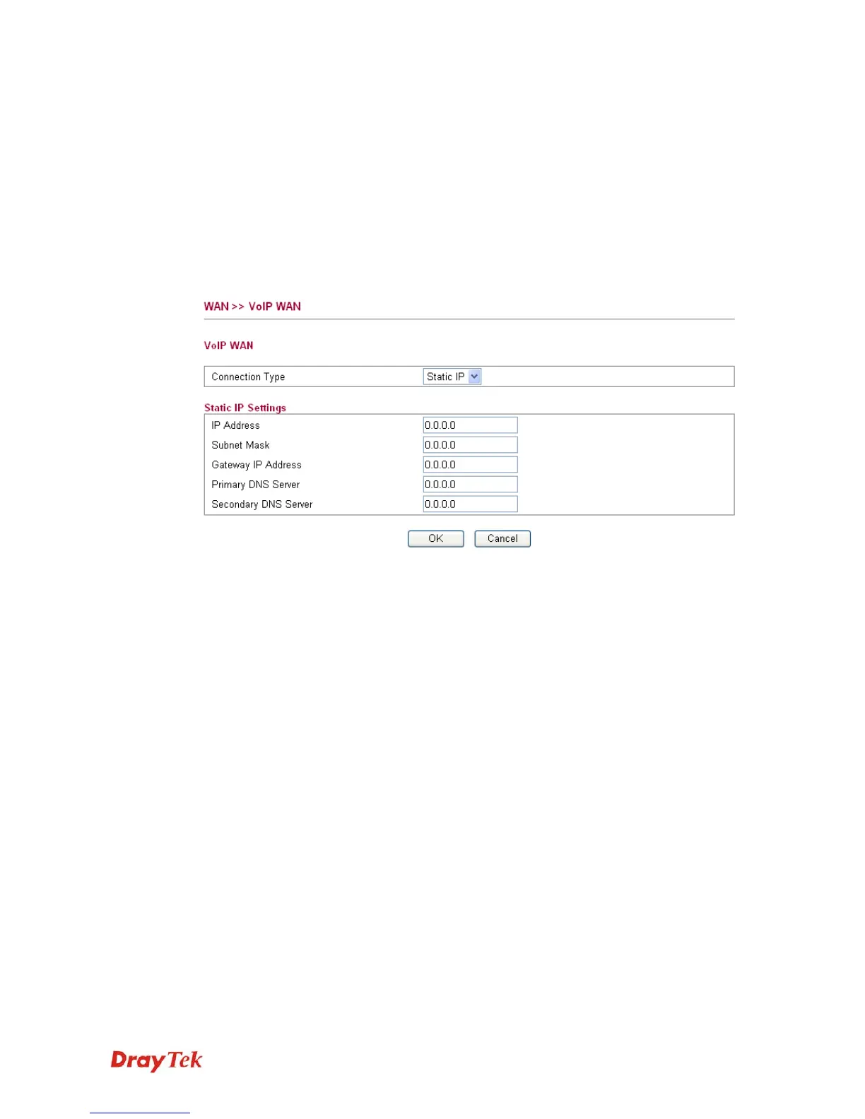 VoIP WAN is the interface specified for the usage of VoIP. The settings will be changed