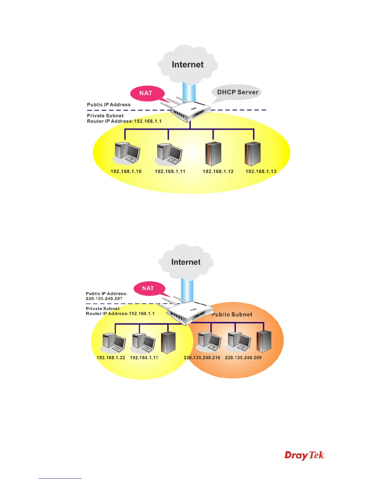 each host is equipped with a public IP address. As a part of the public subnet, the Vigor router