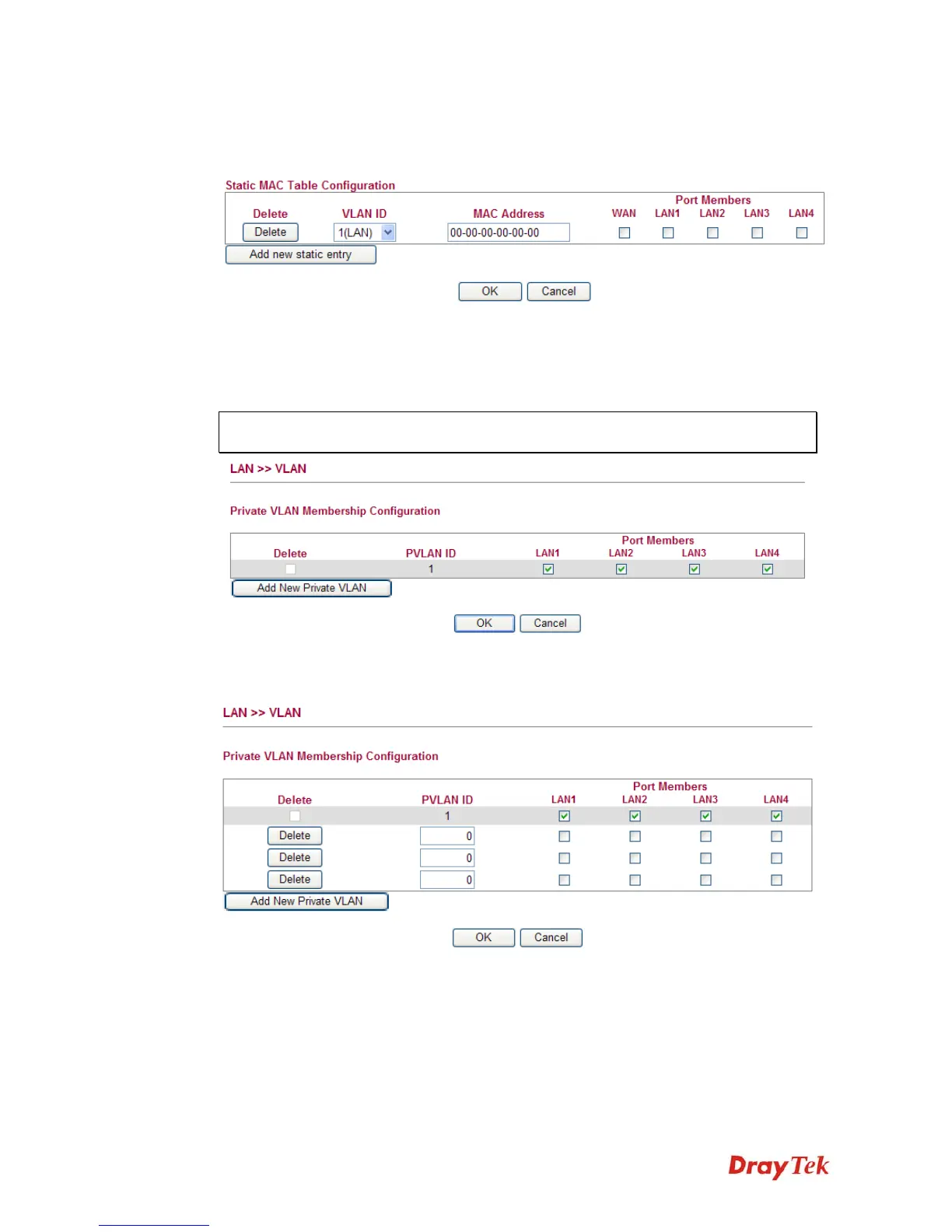 Add New Private VLAN Click this button to add a new private VLAN. The router allows