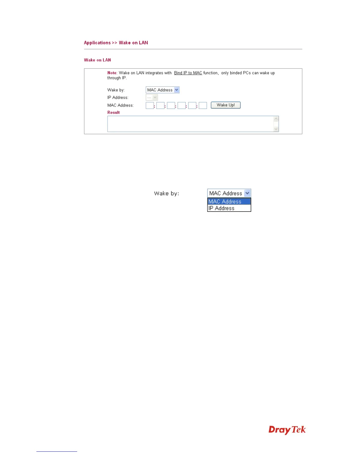 Wake by Two types provide for you to wake up the binded IP. If you