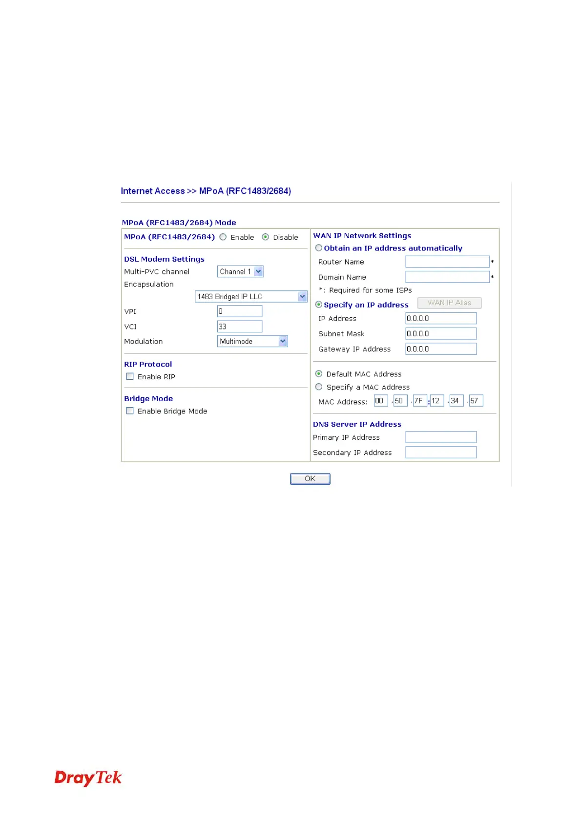 MPoA (RFC1483/2684) Click Enable for activating this function. If you click Disable, this