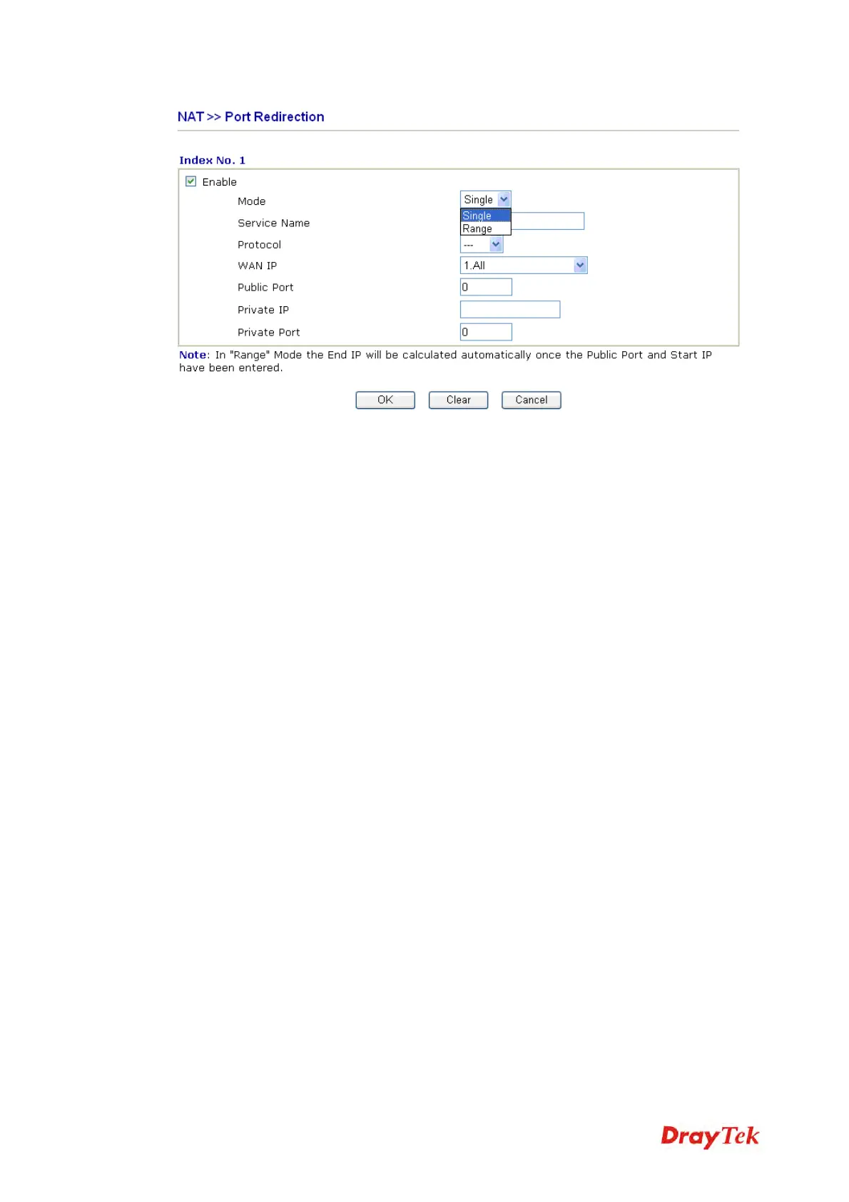 service. If you choose Range as the port redirection mode, you will