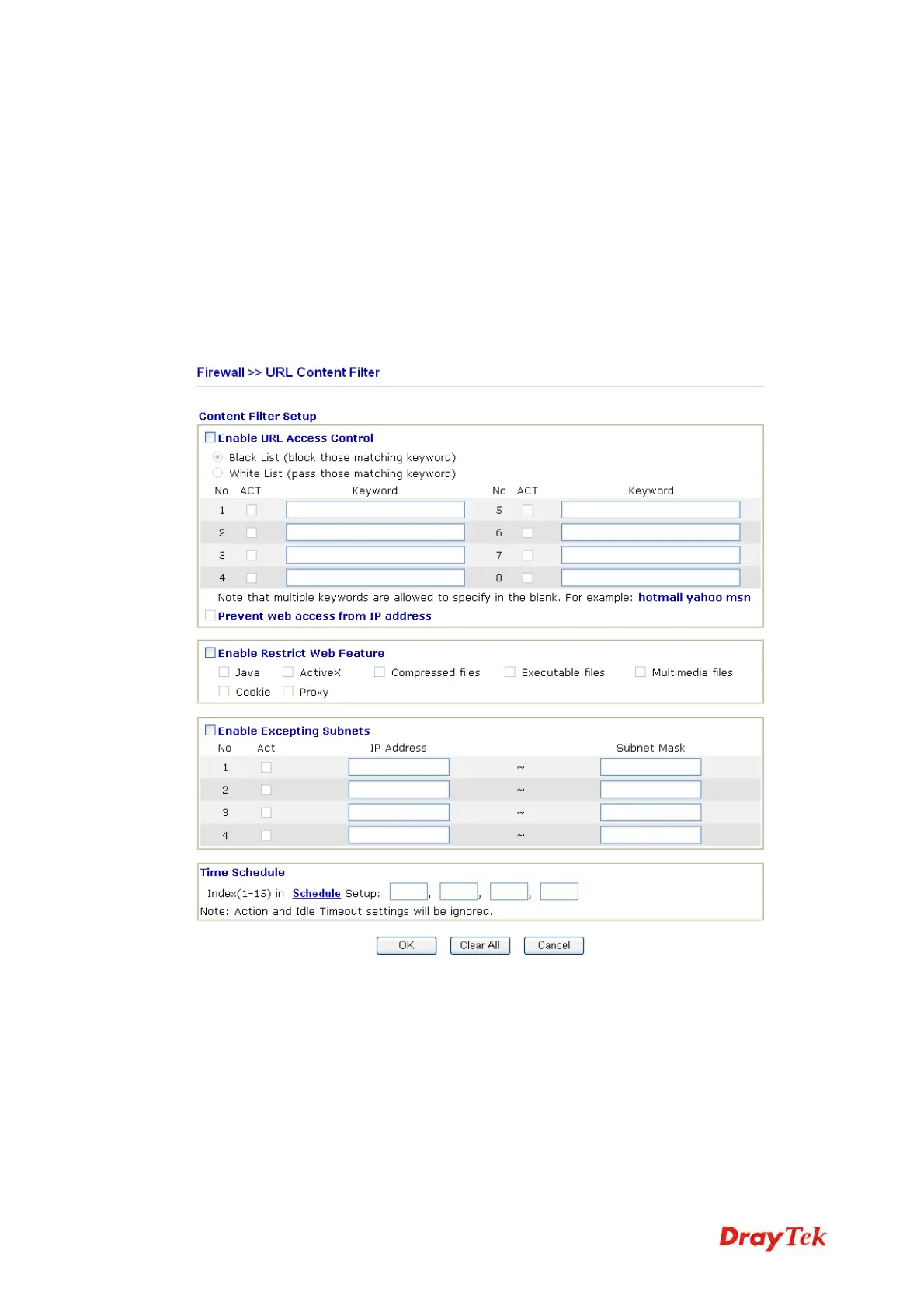 For example, if you add key words such as “sex”, Vigor router will limit web access to web