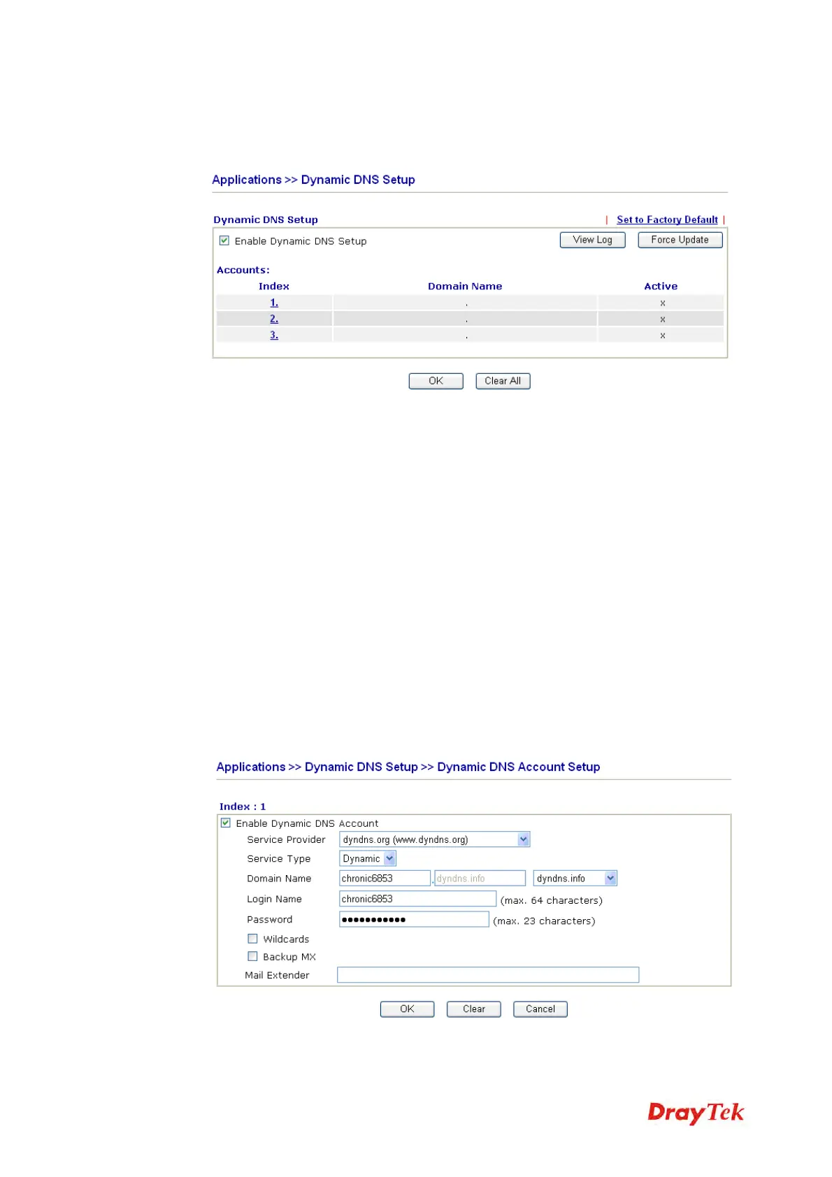 Enable Dynamic DNS Setup Check this box to enable DDNS function.