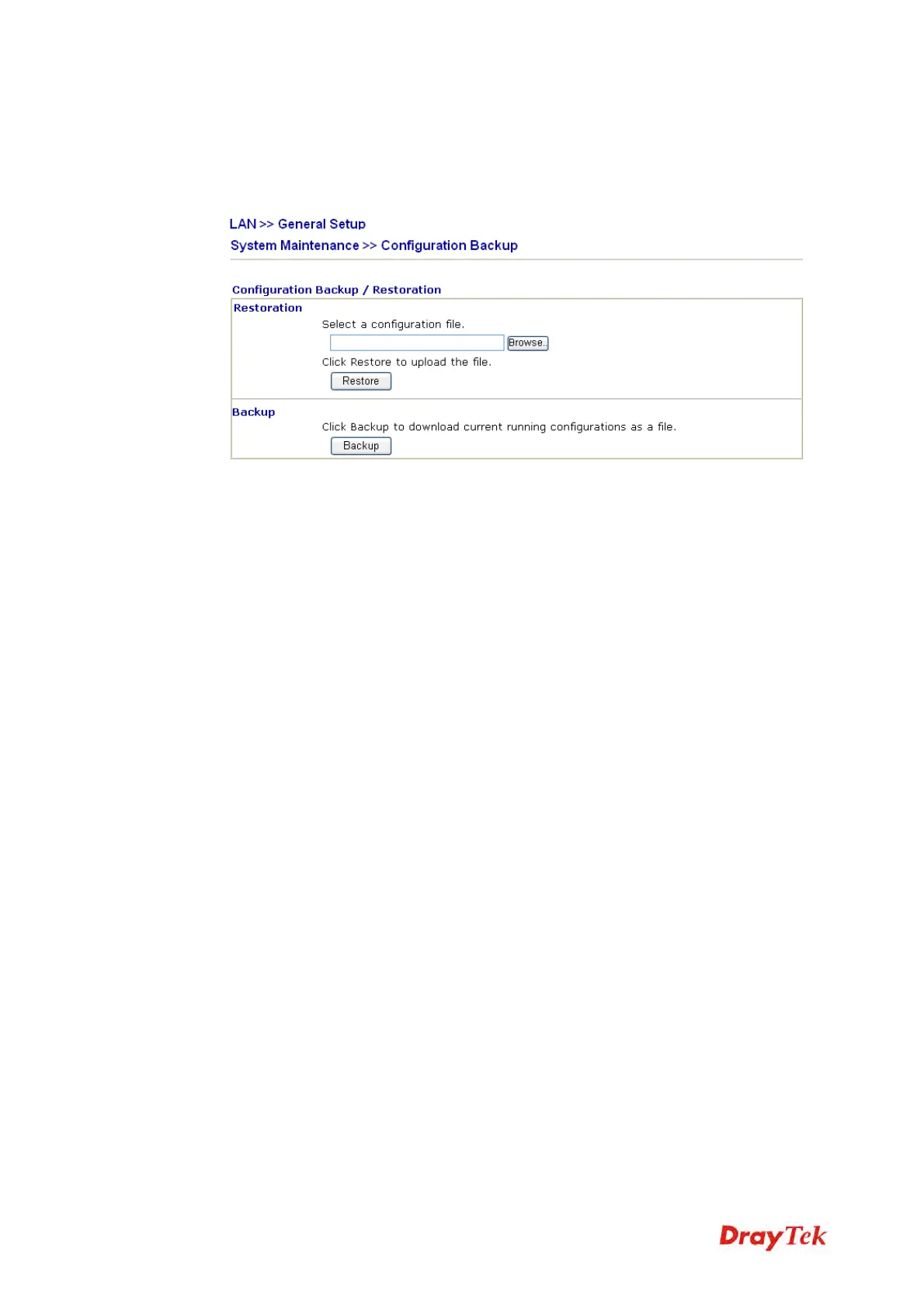 1. Go to System Maintenance >> Configuration Backup. The following windows will