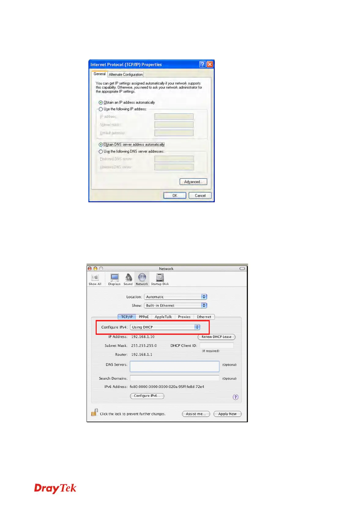 4. Select Obtain an IP address automatically and Obtain DNS server address