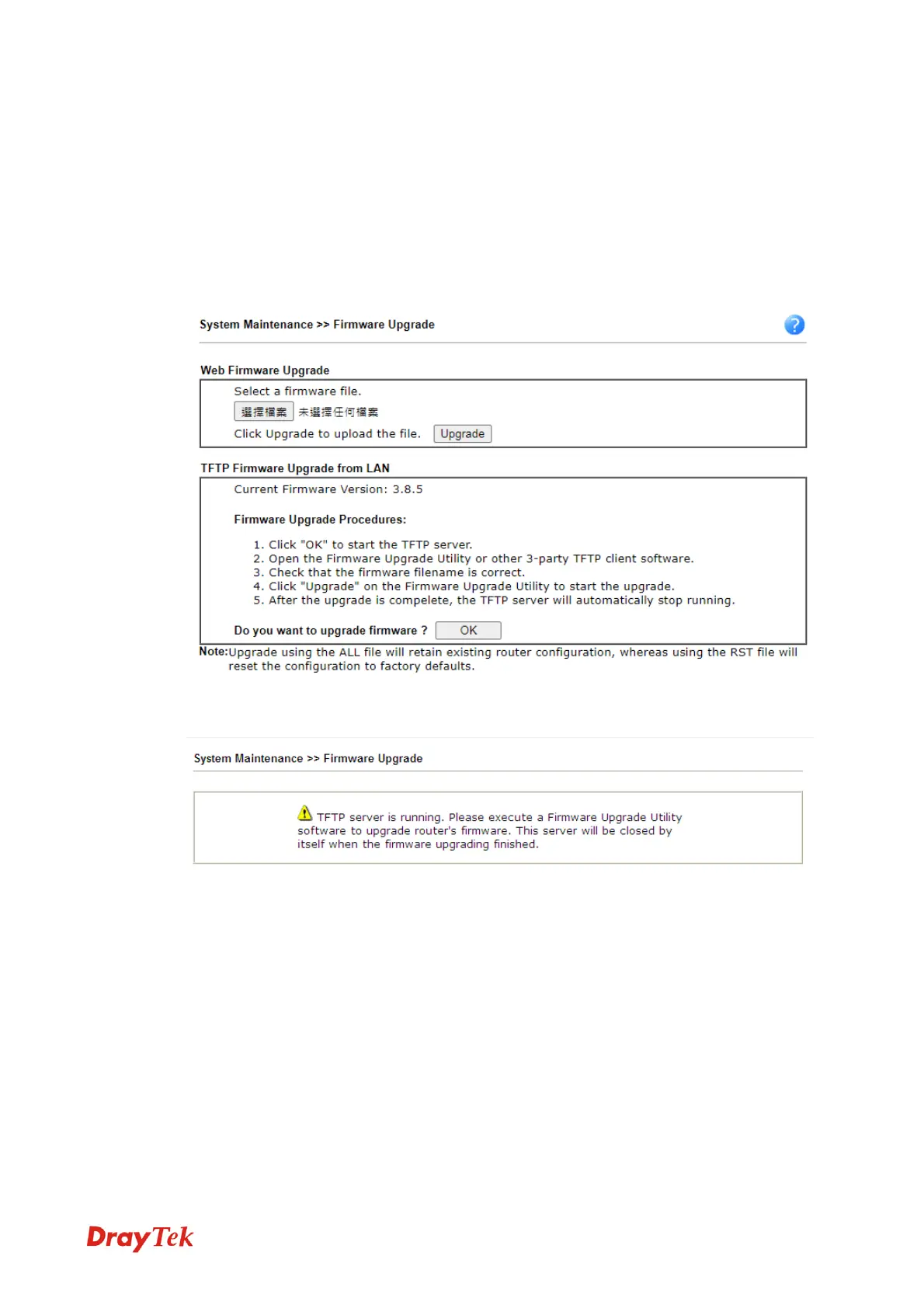 Download the newest firmware from DrayTek's web site or FTP site. The DrayTek web site