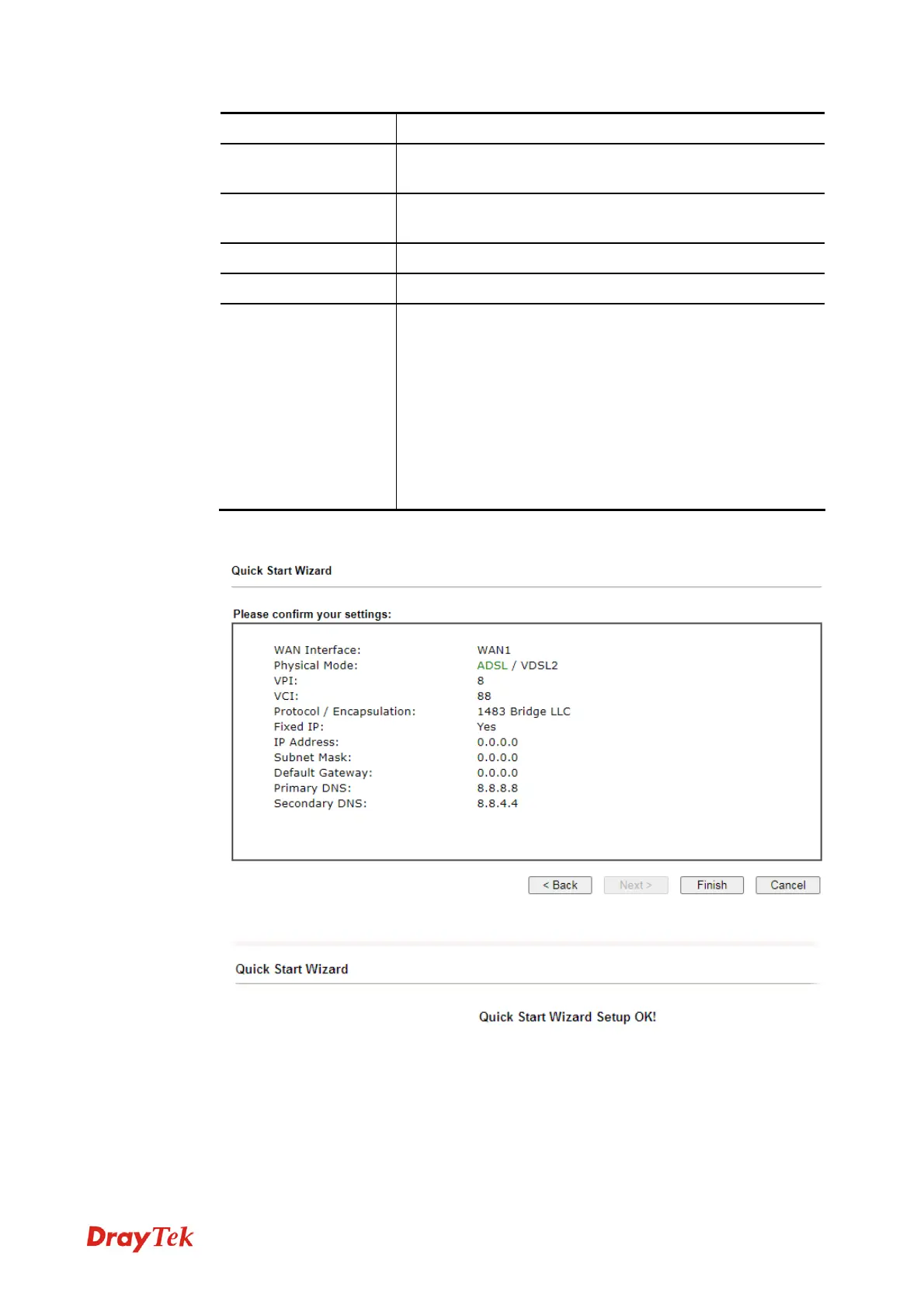 5. Click Finish. The Quick Start Wizard Setup OK page will be displayed.
