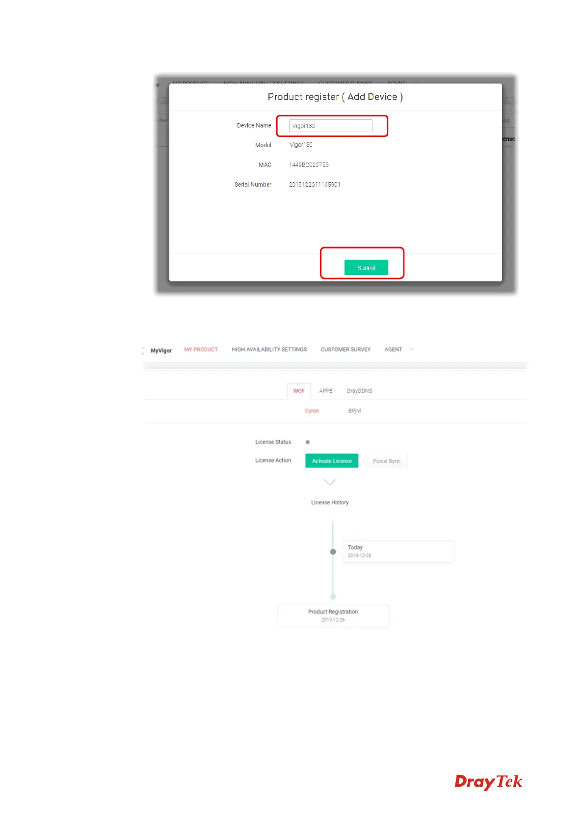 database. Your router has been registered to myvigor website successfully.