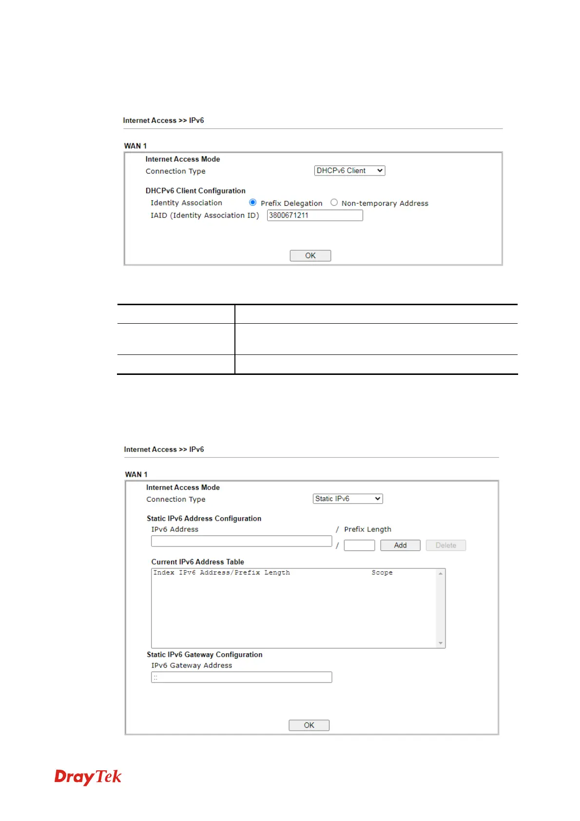 This type allows you to setup static IPv6 address for WAN interface.