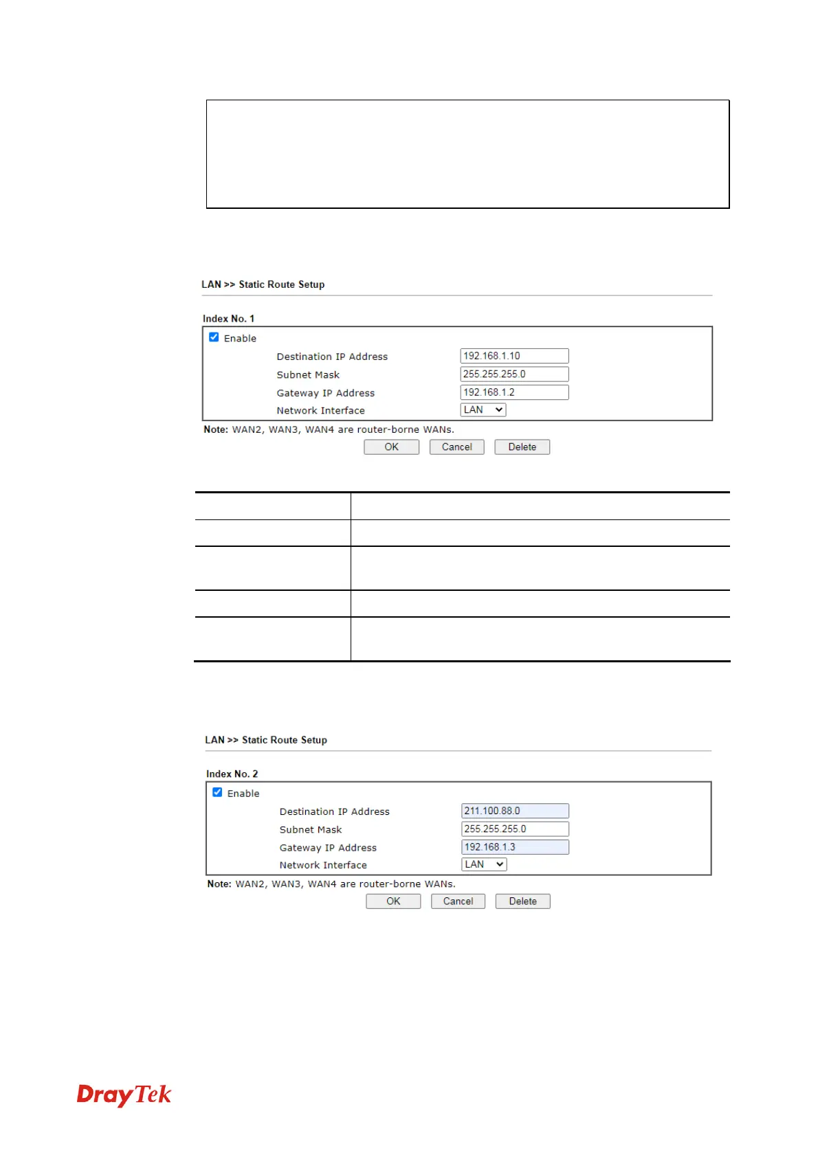 3. Return to Static Route Setup page. Click on another Index Number to add another