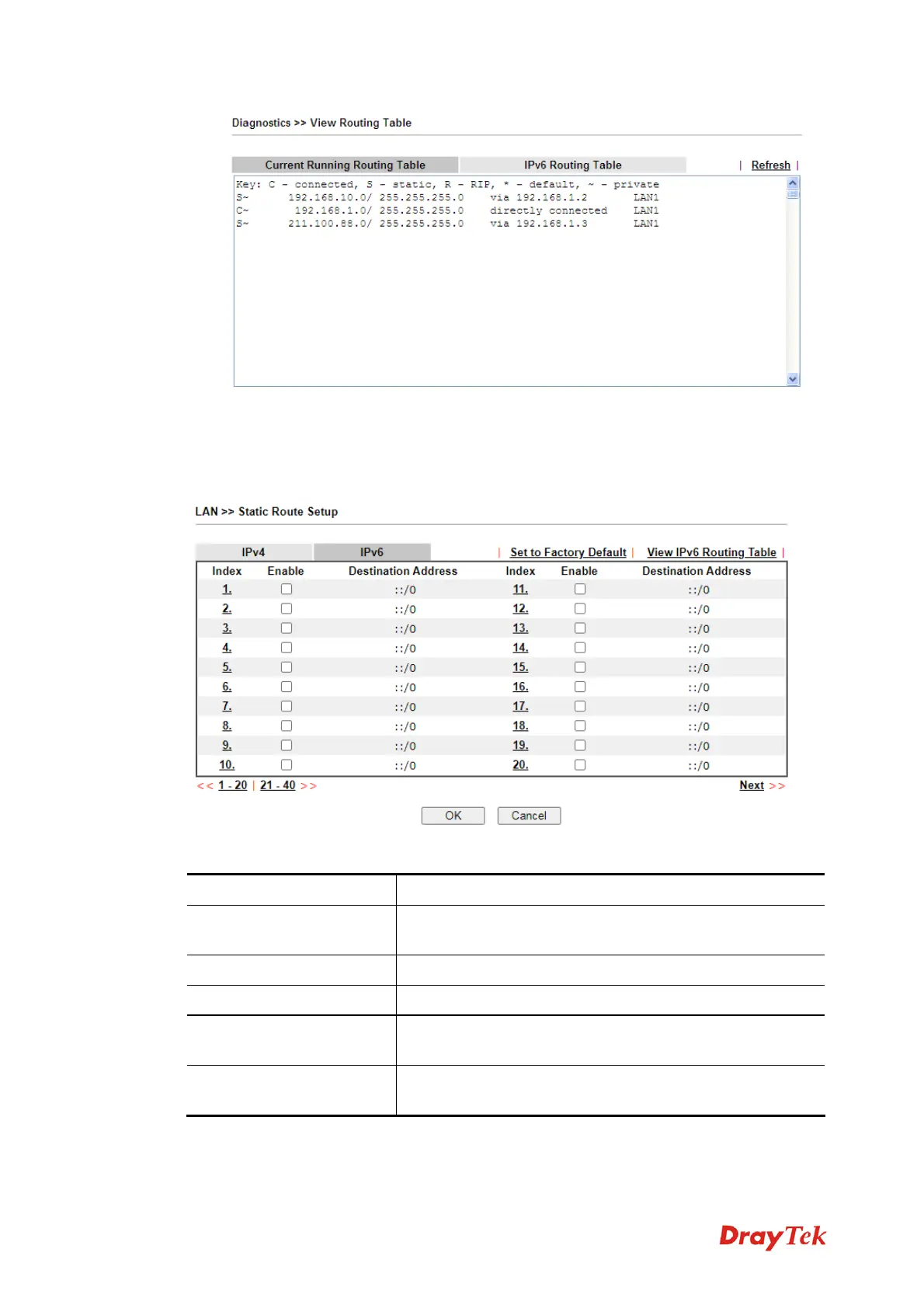 You can set up to 40 profiles for IPv6 static route. Click the IPv6 tab to open the following