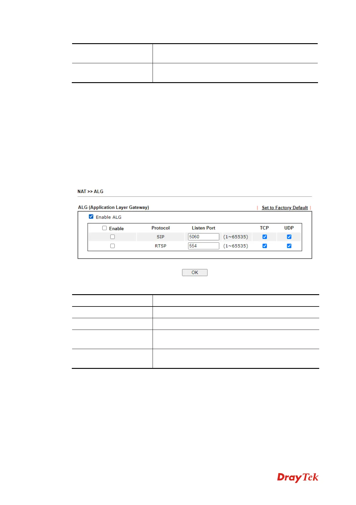 ALG means Application Layer Gateway. There are two methods provided by Vigor router,