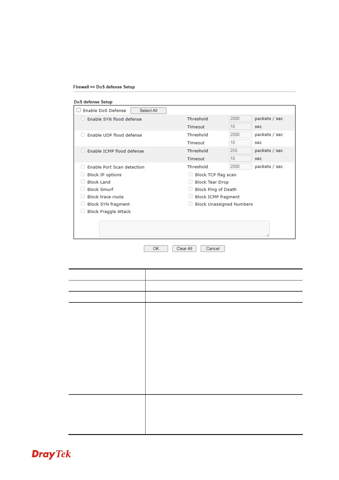 the DoS Defense setup. The DoS Defense functionality is disabled for default.