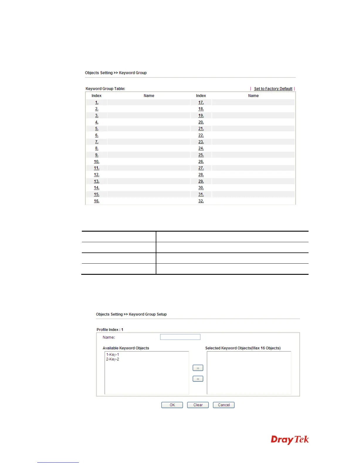 This page allows you to bind several keyword objects into one group. The keyword groups