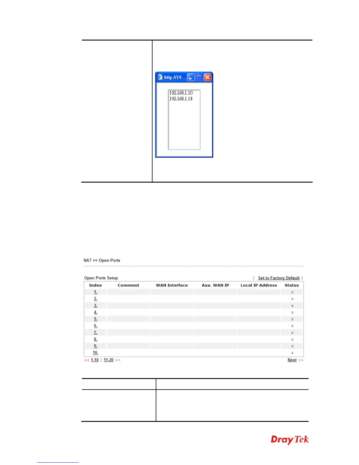 Click Open Ports to open the following page: