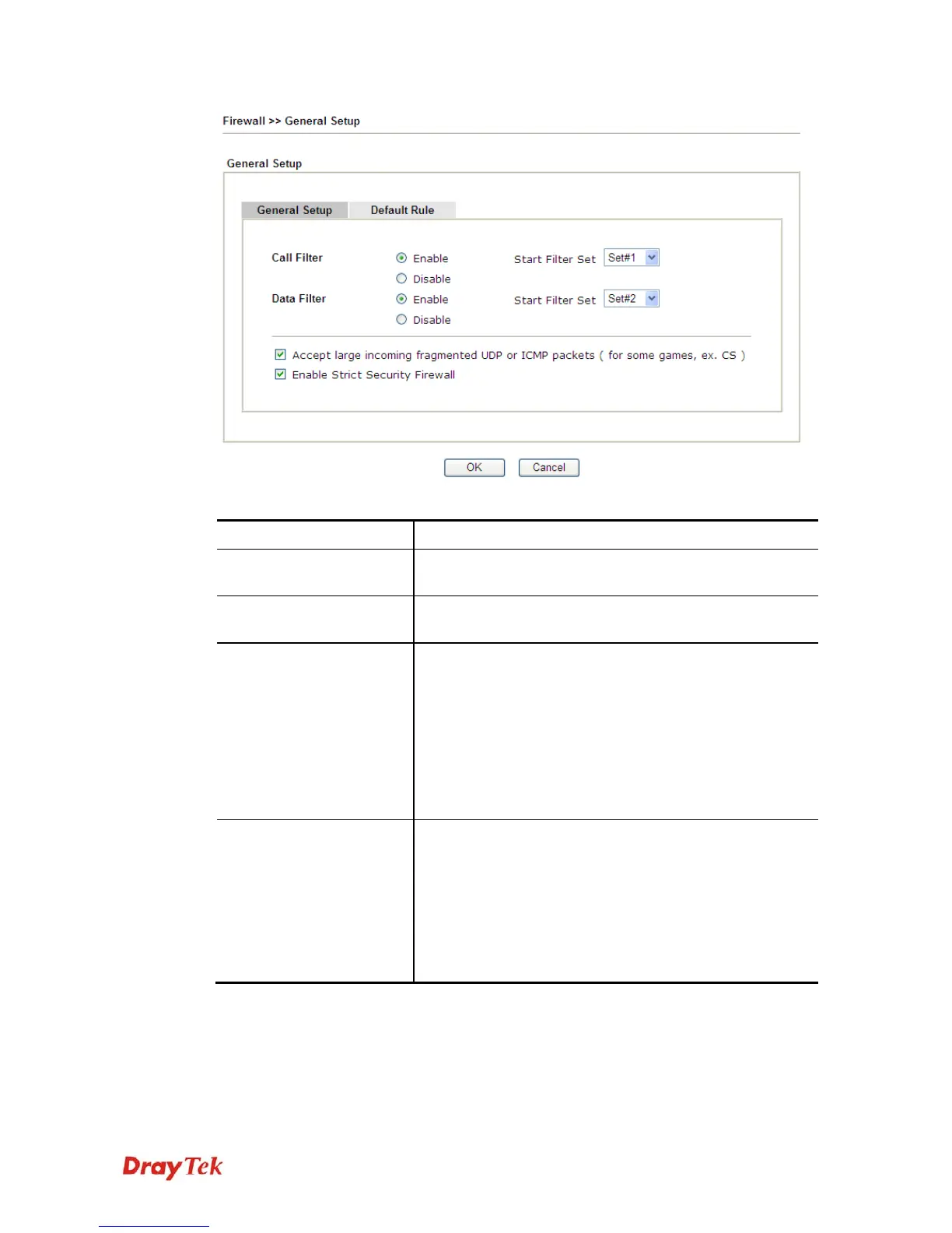 transmitting through Vigor modem, will be filtered by
