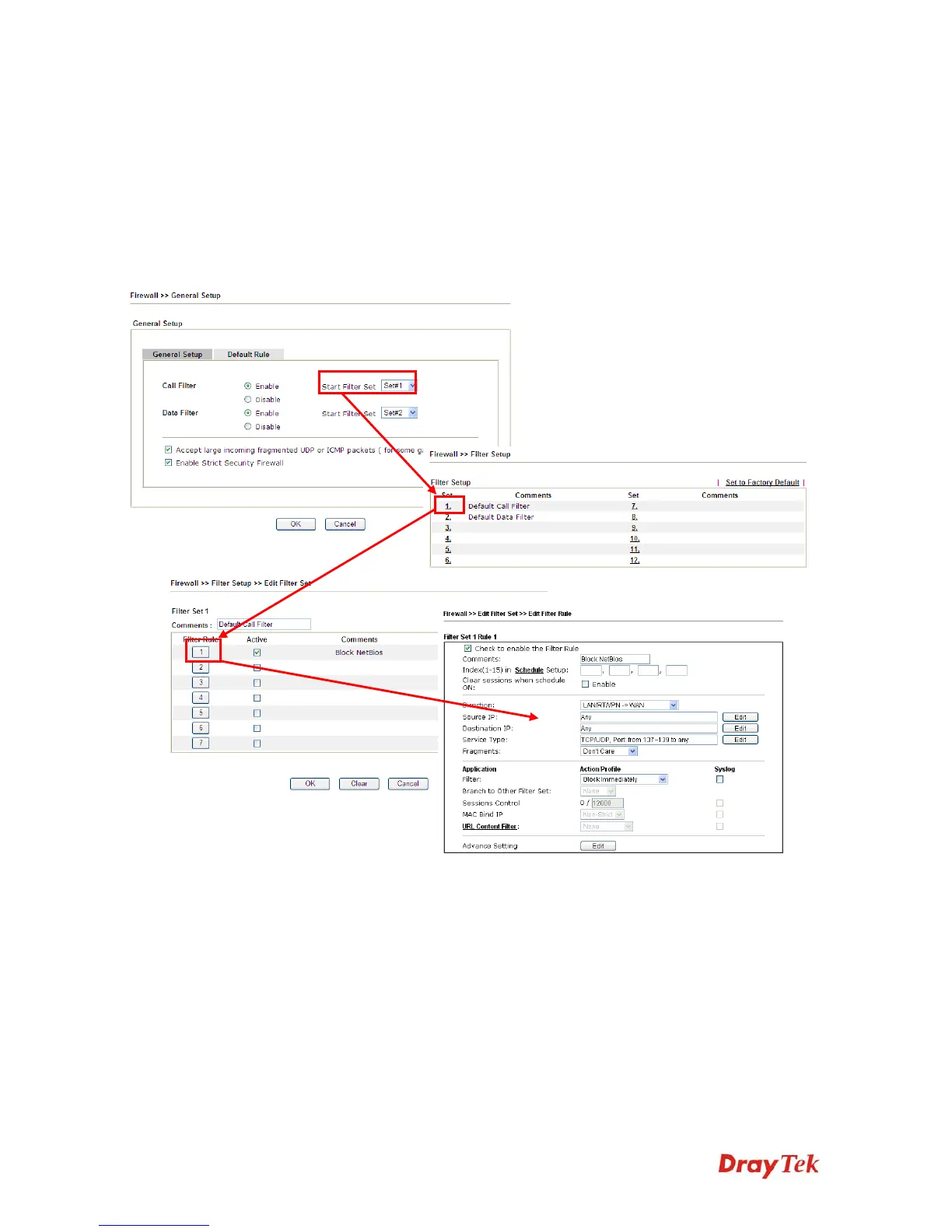 further defined. After that, in General Setup you may specify one set for call filter and one