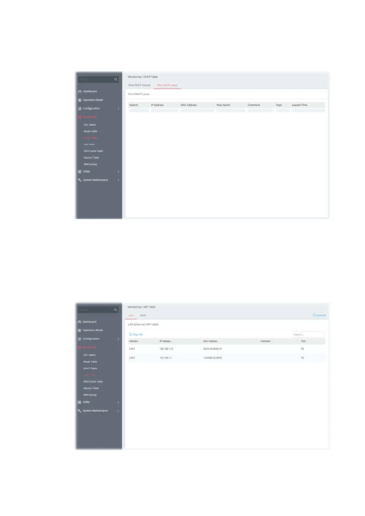 Draytek Vigor167 - IV-1-3-2 Ipv4 DHCP Lease; IV-1-4 ARP Table; IV-1-4-1 Lan