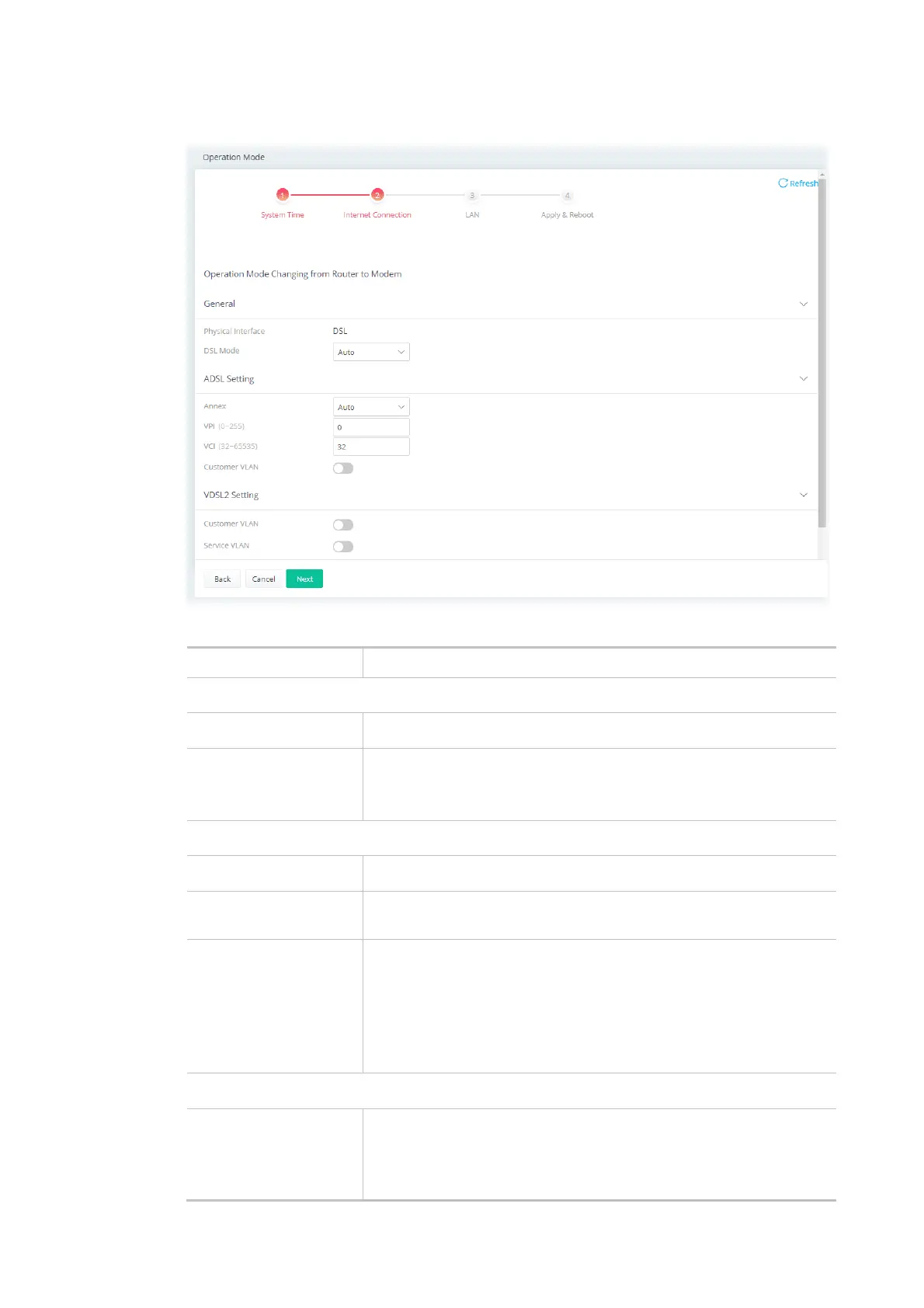 DSL Mode Select the DSL connection mode.