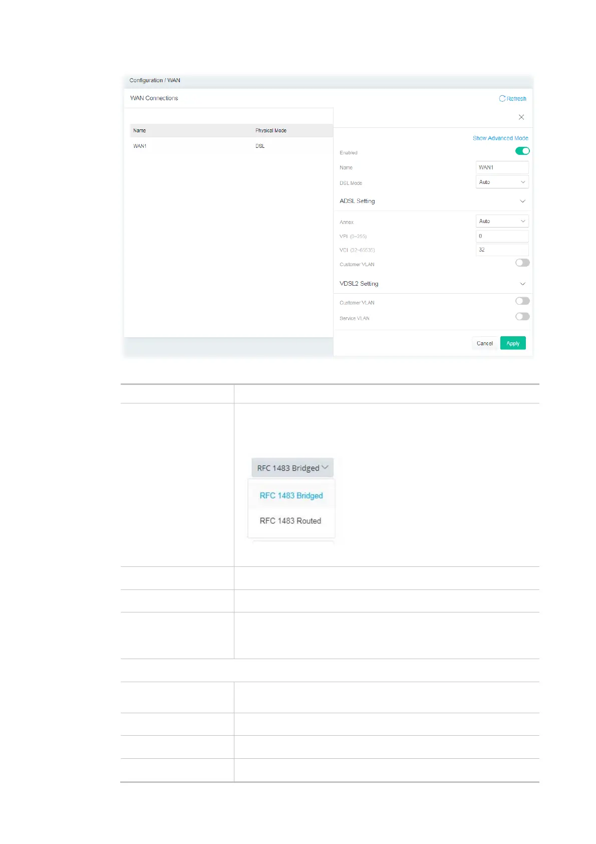 DSL Mode Specify which DSL mode (e.g., VDSL2, ADSL2, ADSL2 multimode,