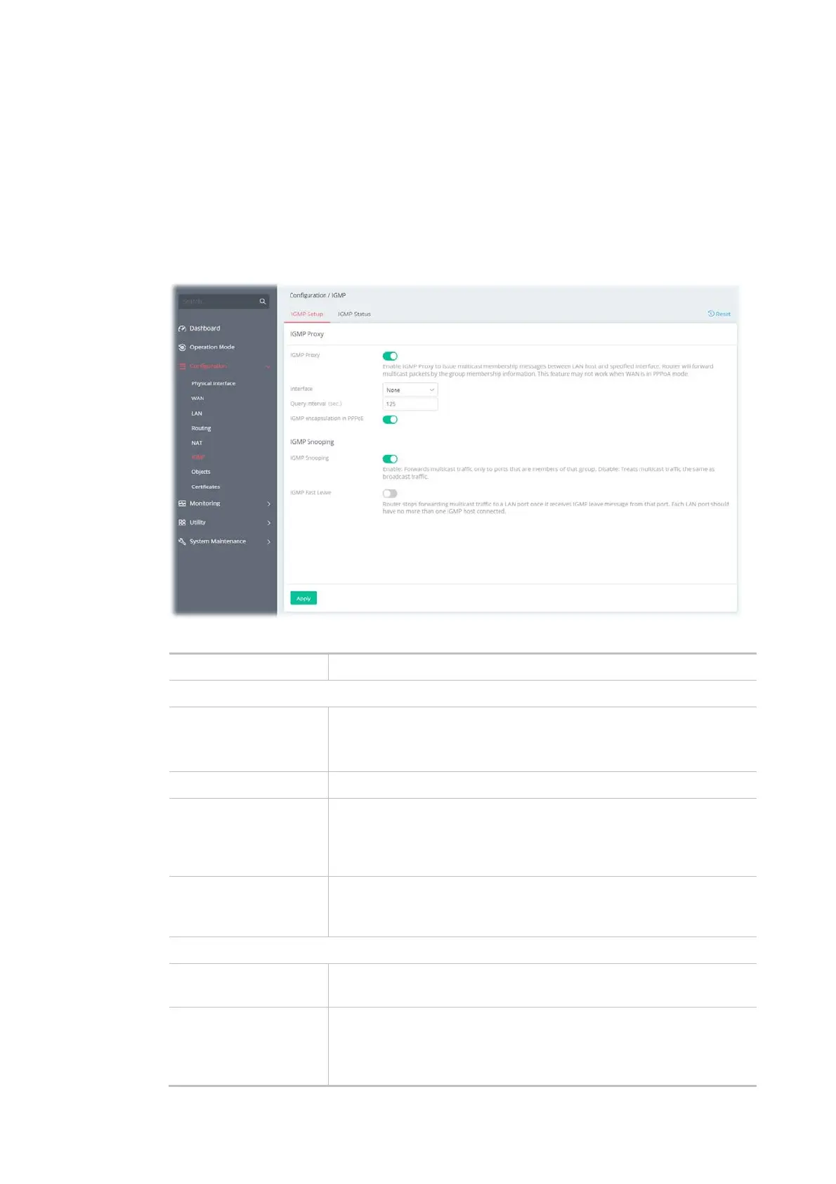 IGMP Proxy Switch the toggle to enable or disable the function.
