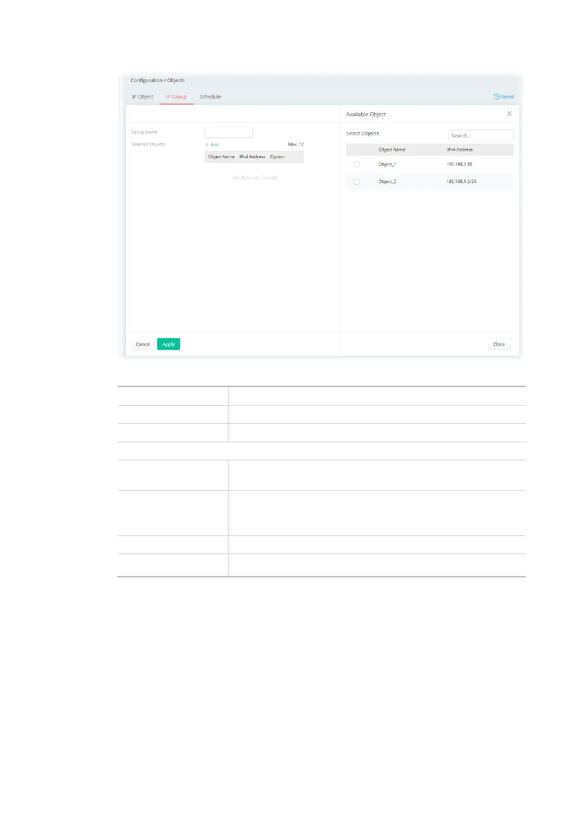 Selected Objects Search - Enter the IP object name or the IPv4 address to display