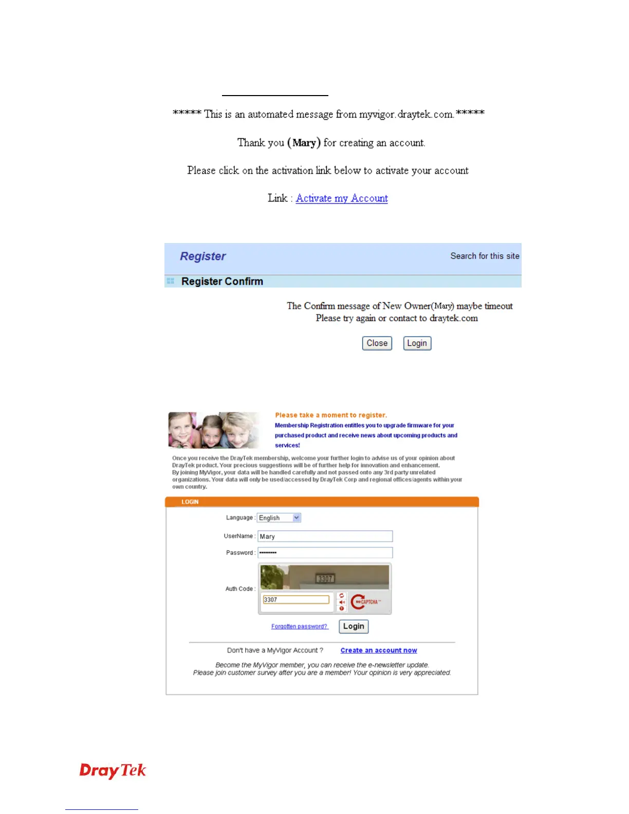 Now, click Login. Your account has been activated. You can access into MyVigor server to