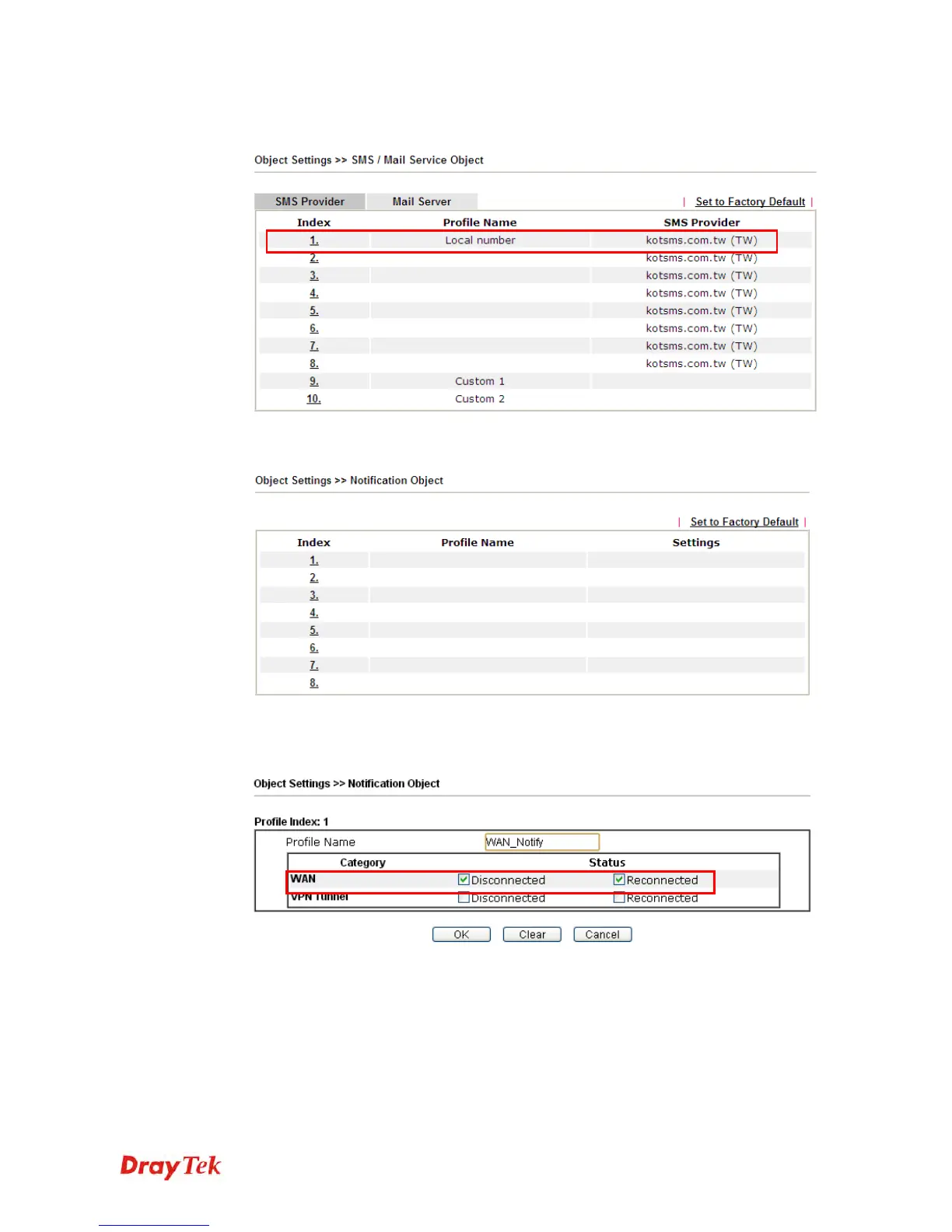 the SMS. In the following page, type the name of the profile and check the Disconnected