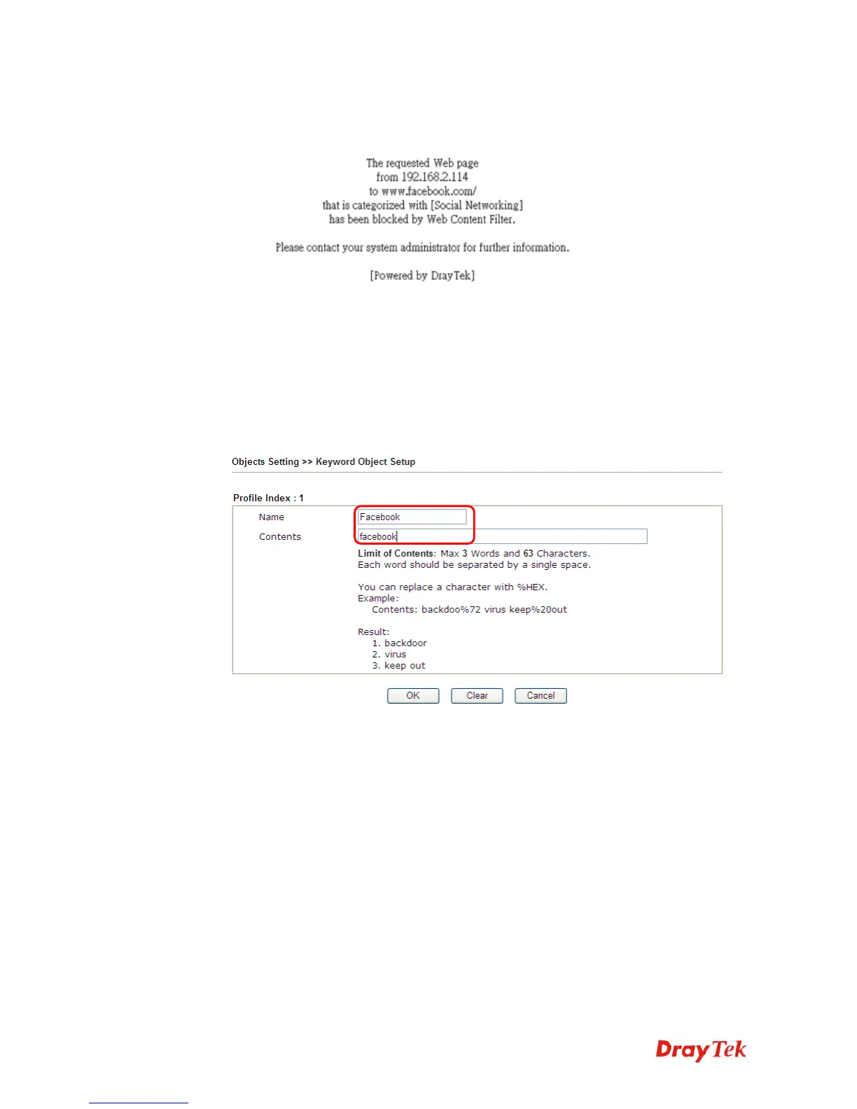 2. In the field of Contents, please type facebook. Configure the settings as the following