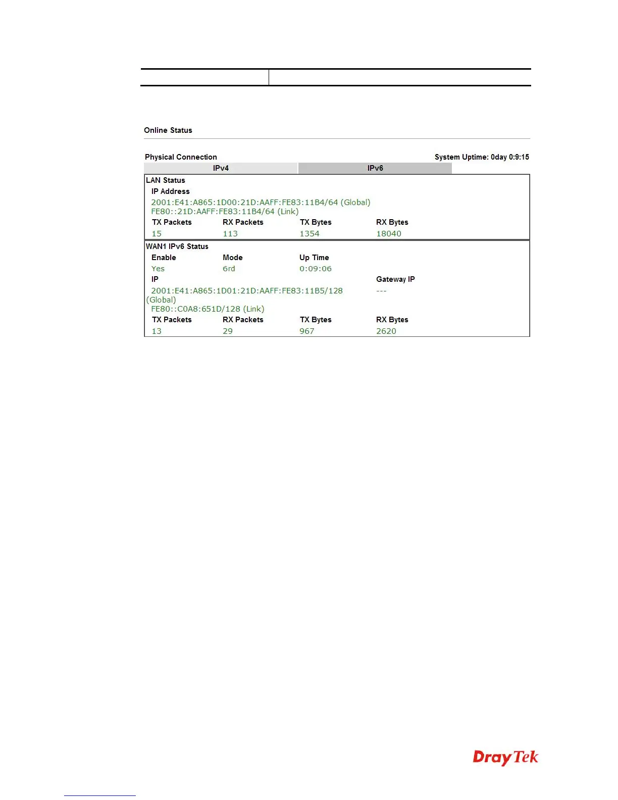Below shows an example for successful IPv6 connection based on 6rd mode.
