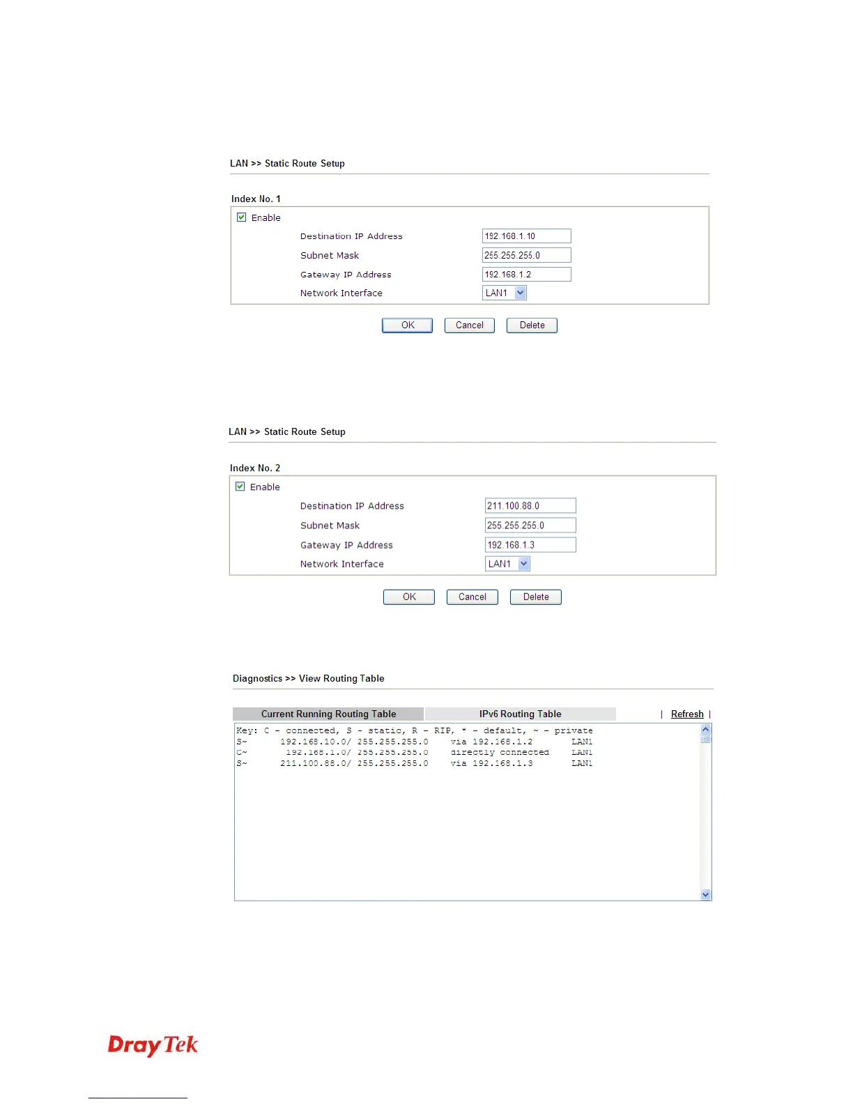 2. Click the LAN >> Static Route and click on the Index Number 1. Check the Enable