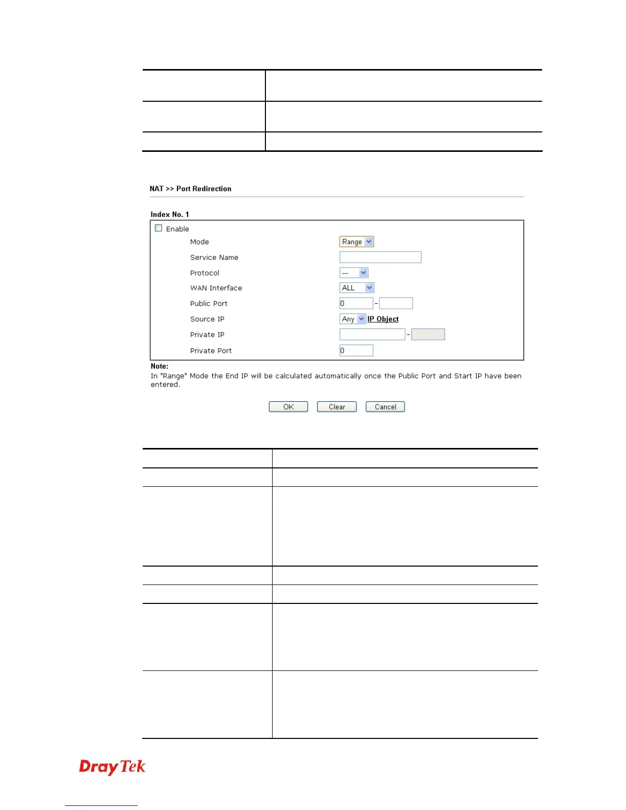 Range as the port redirection mode, you will see two boxes