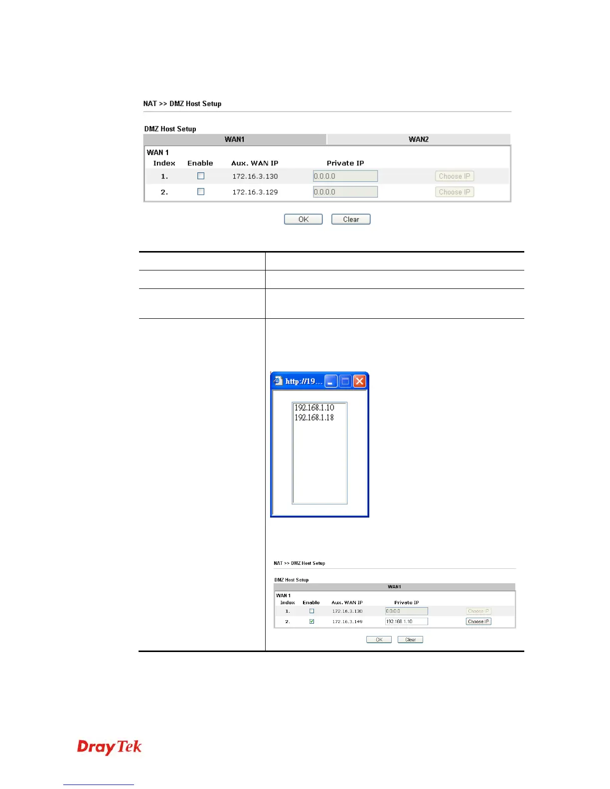 Select one private IP address in the list to be the DMZ host.
