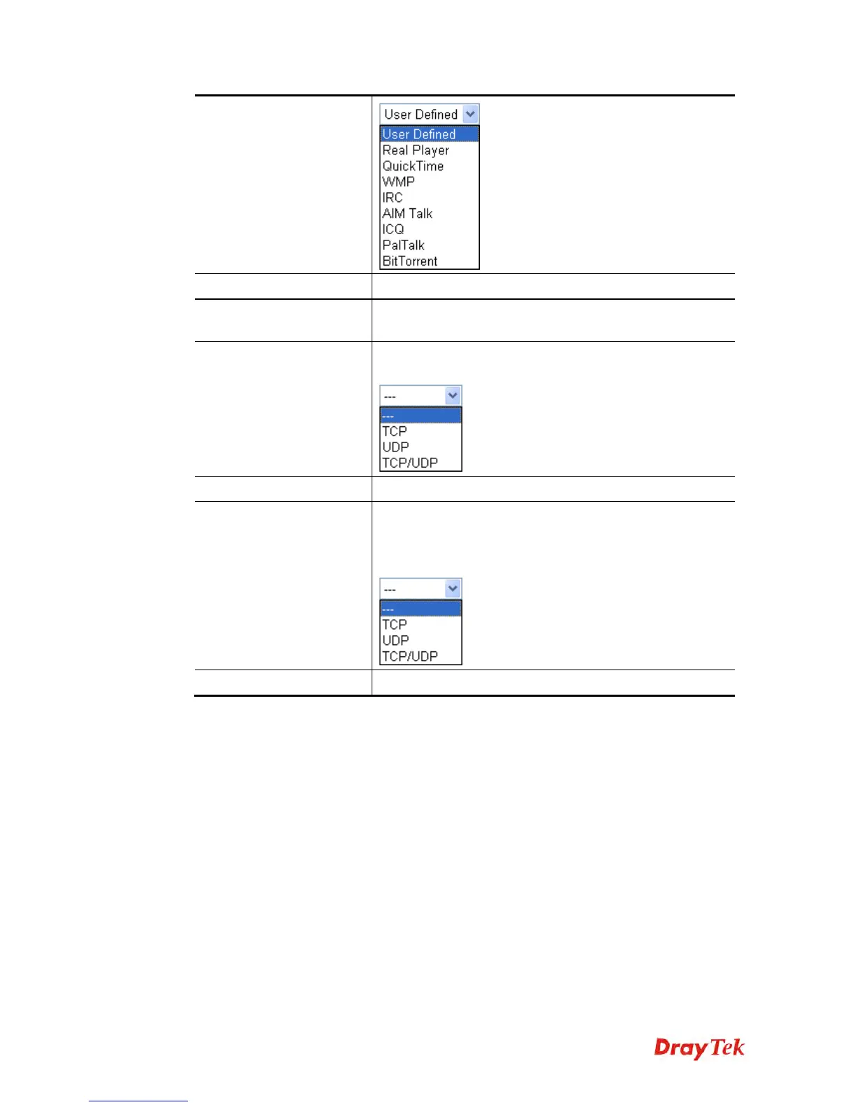 Select the protocol (TCP, UDP or TCP/UDP) for such