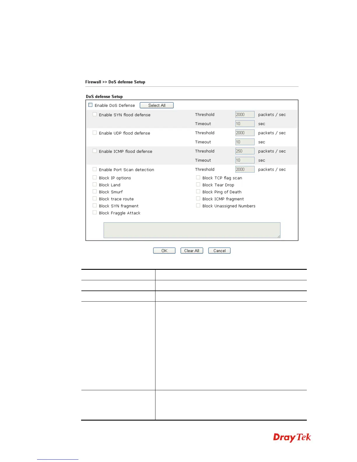 the DoS Defense setup. The DoS Defense functionality is disabled for default.