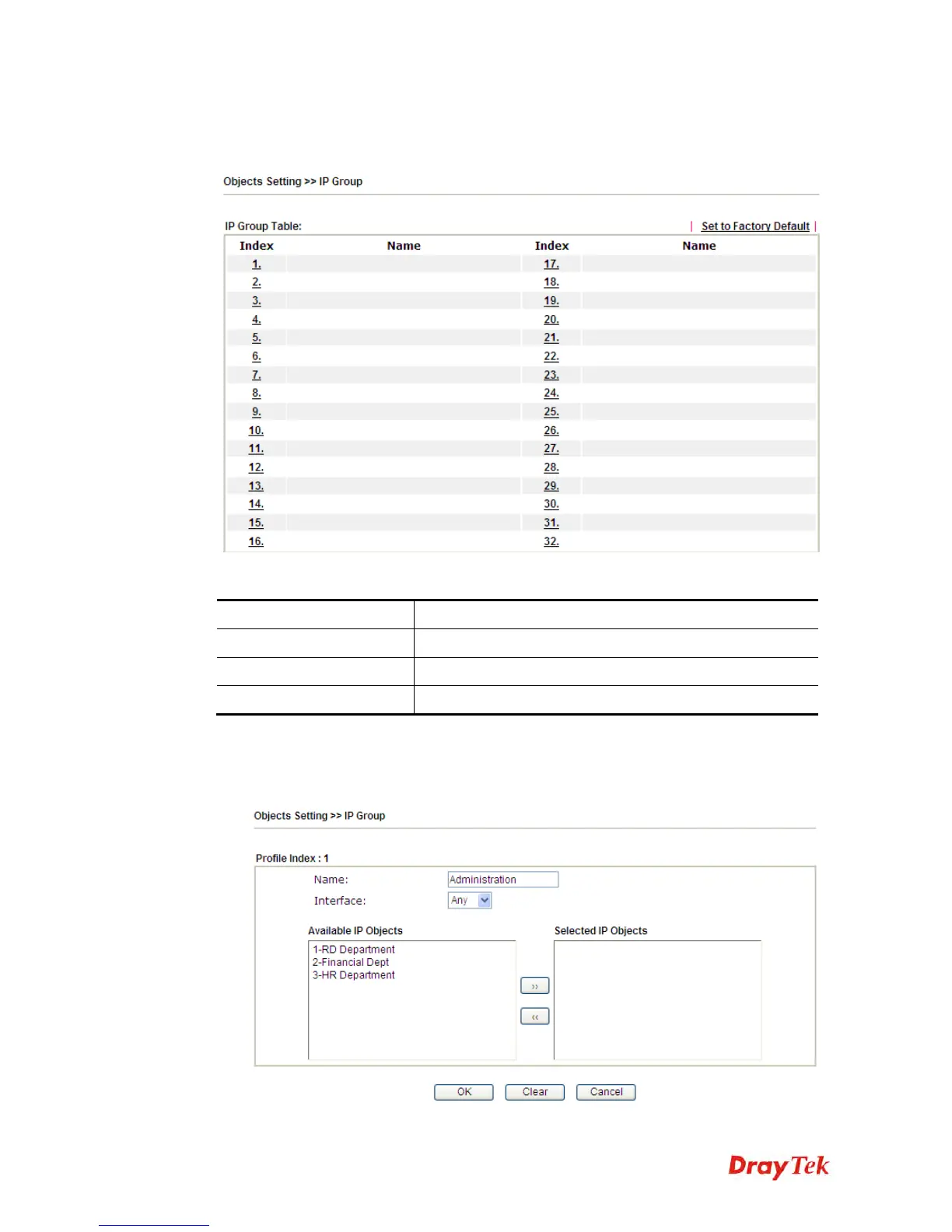 This page allows you to bind several IP objects into one IP group.