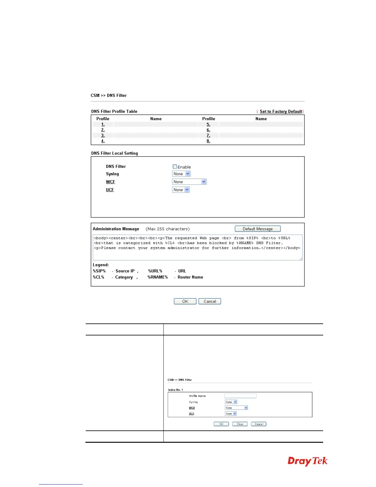 Note: For DNS filter must use the WCF service profile to filter the packets, therefore WCF