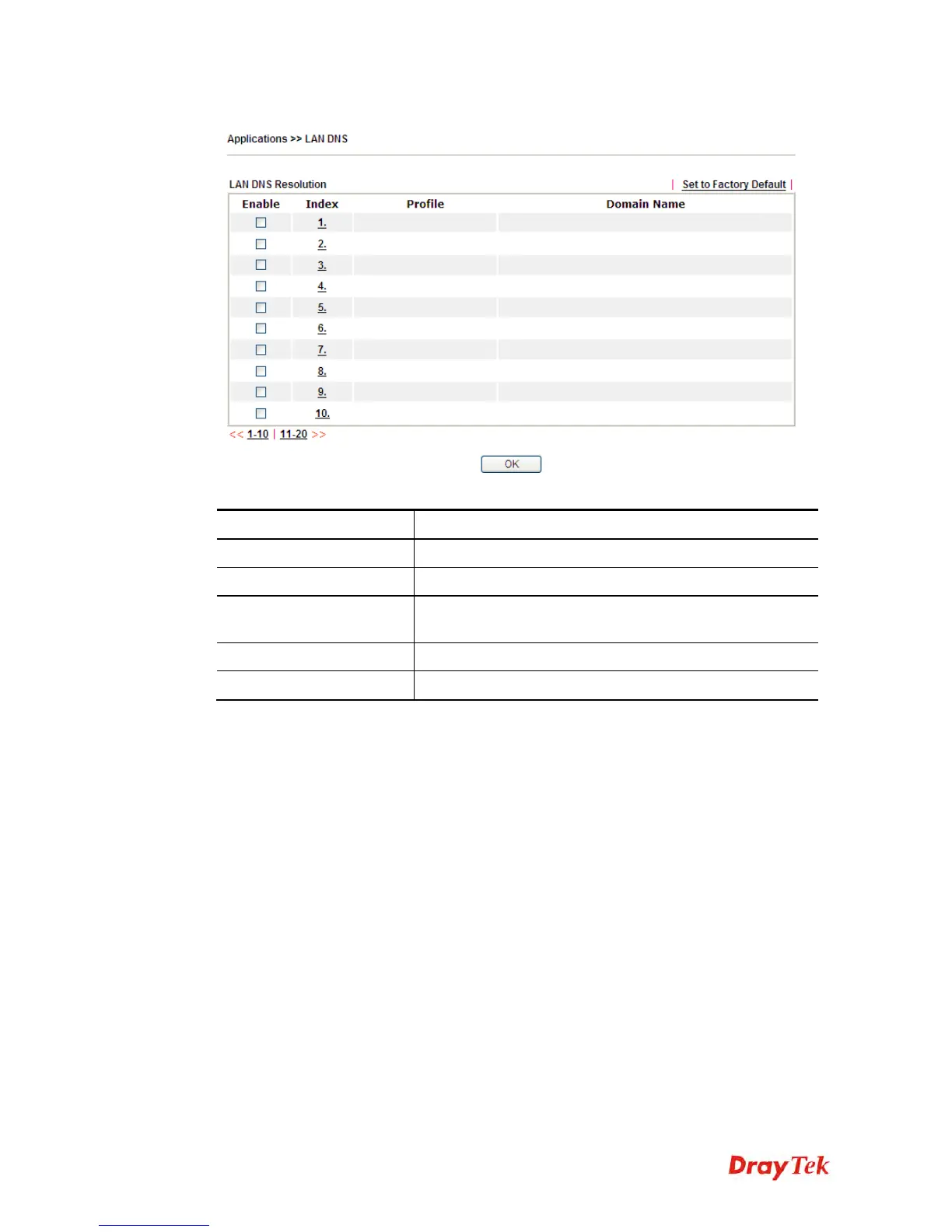 You can set up to 20 LAN DNS profiles.