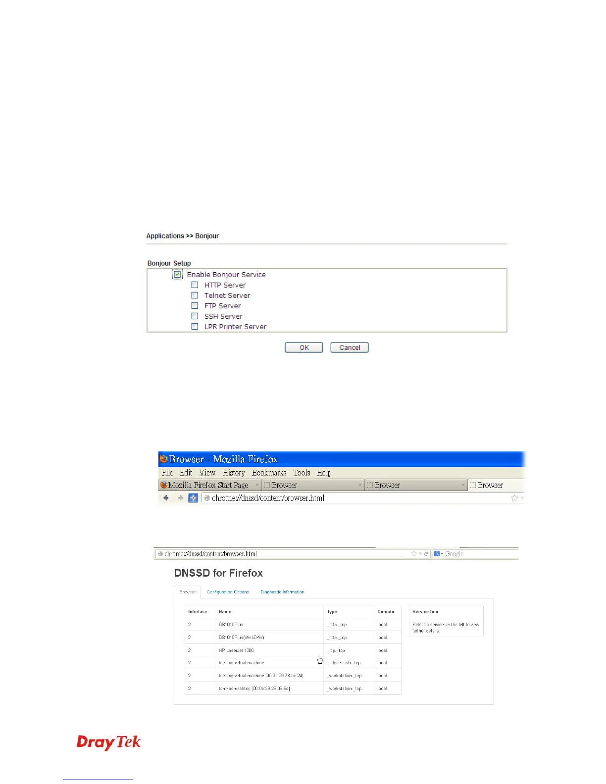 Below shows an example for applying the bonjour feature that Vigor router can be used as the