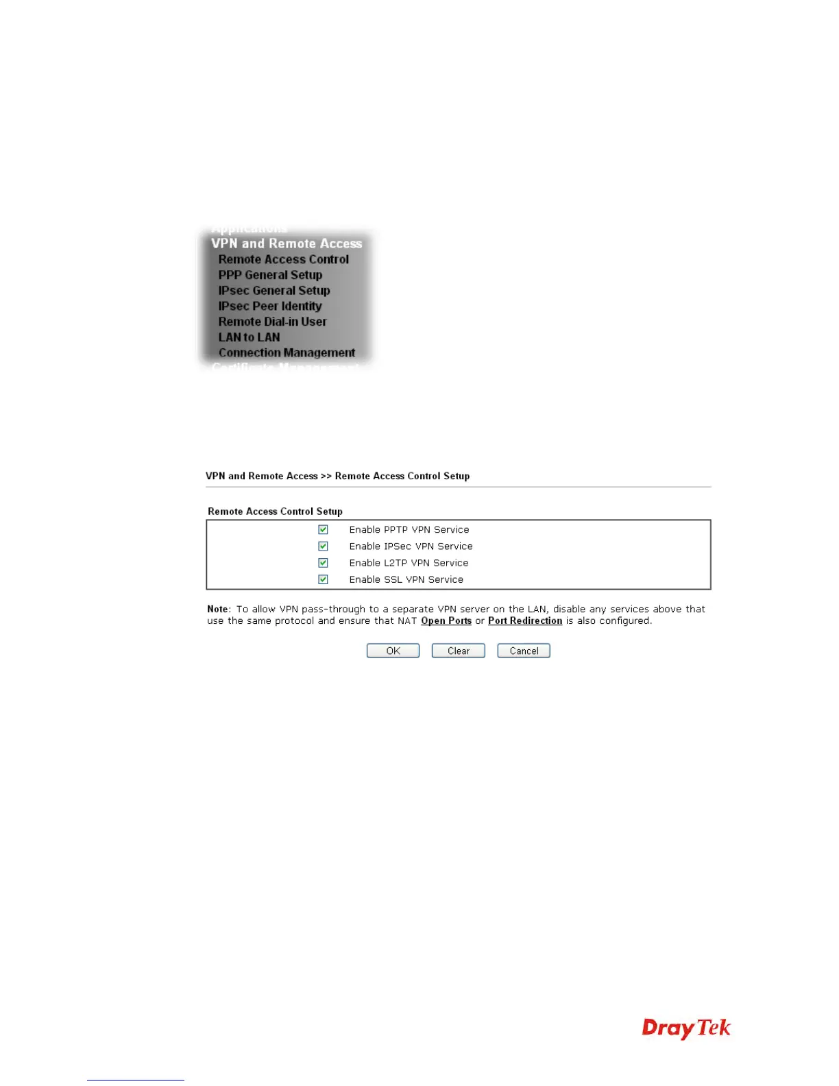 LAN, you should disable the VPN service of Vigor Router to allow VPN tunnel pass through,