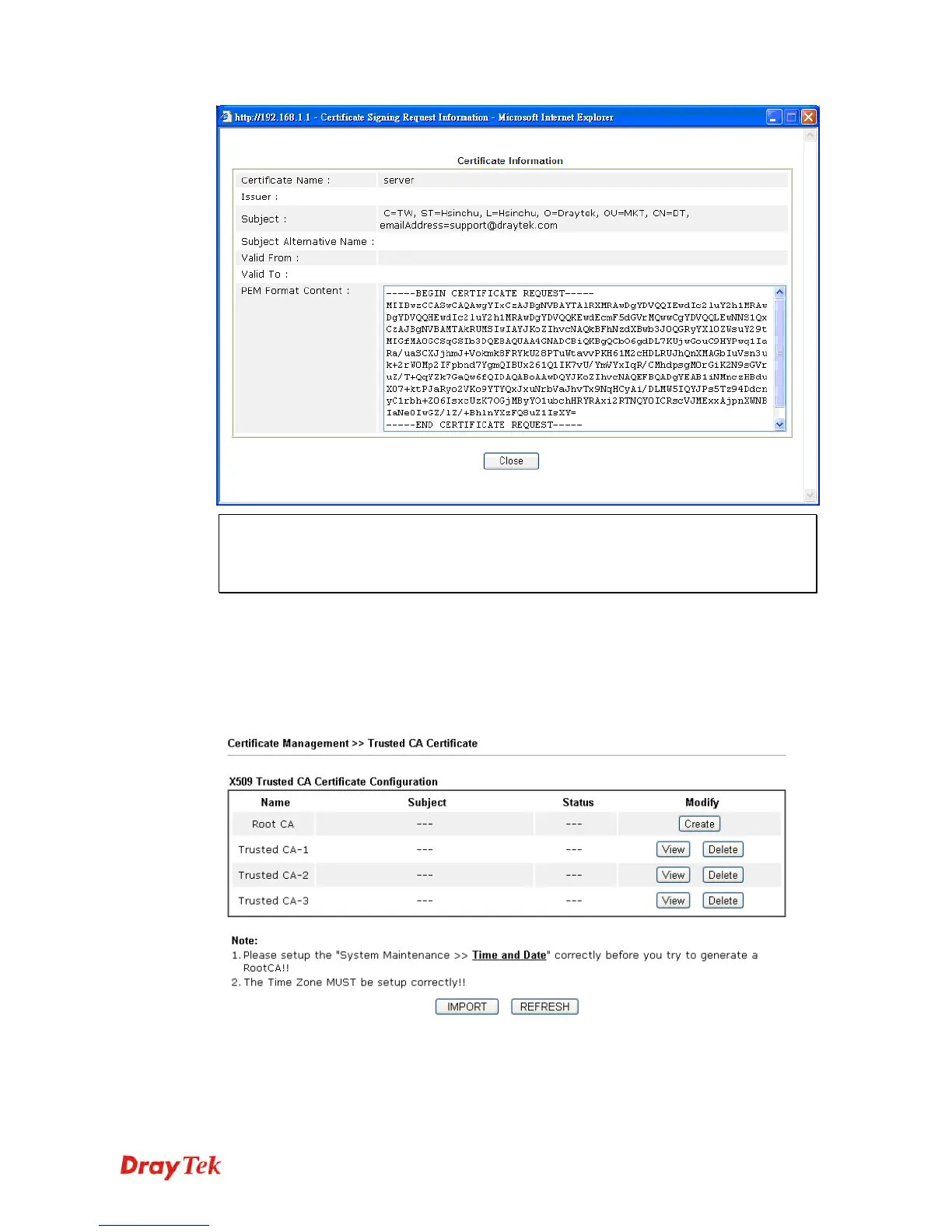 Trusted CA certificate lists three sets of trusted CA certificate.