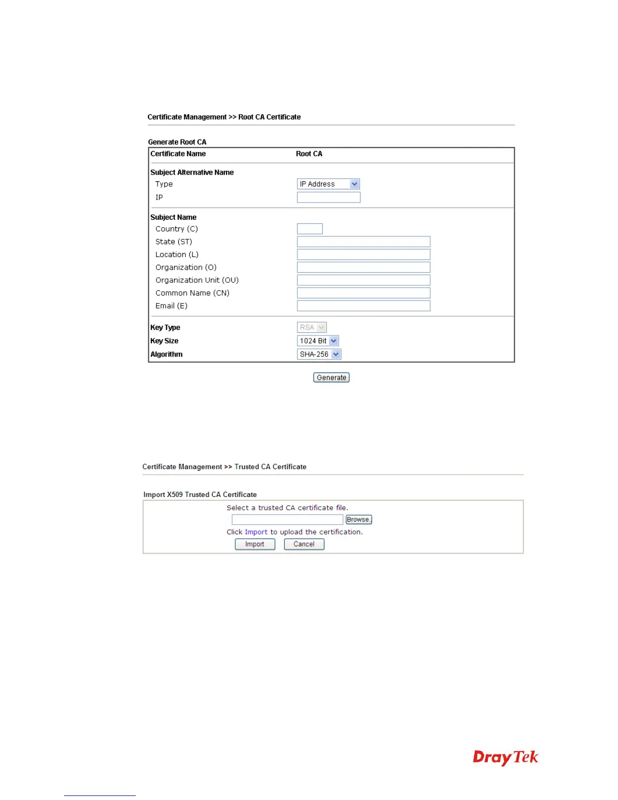 To import a pre-saved trusted CA certificate, please click IMPORT to open the following