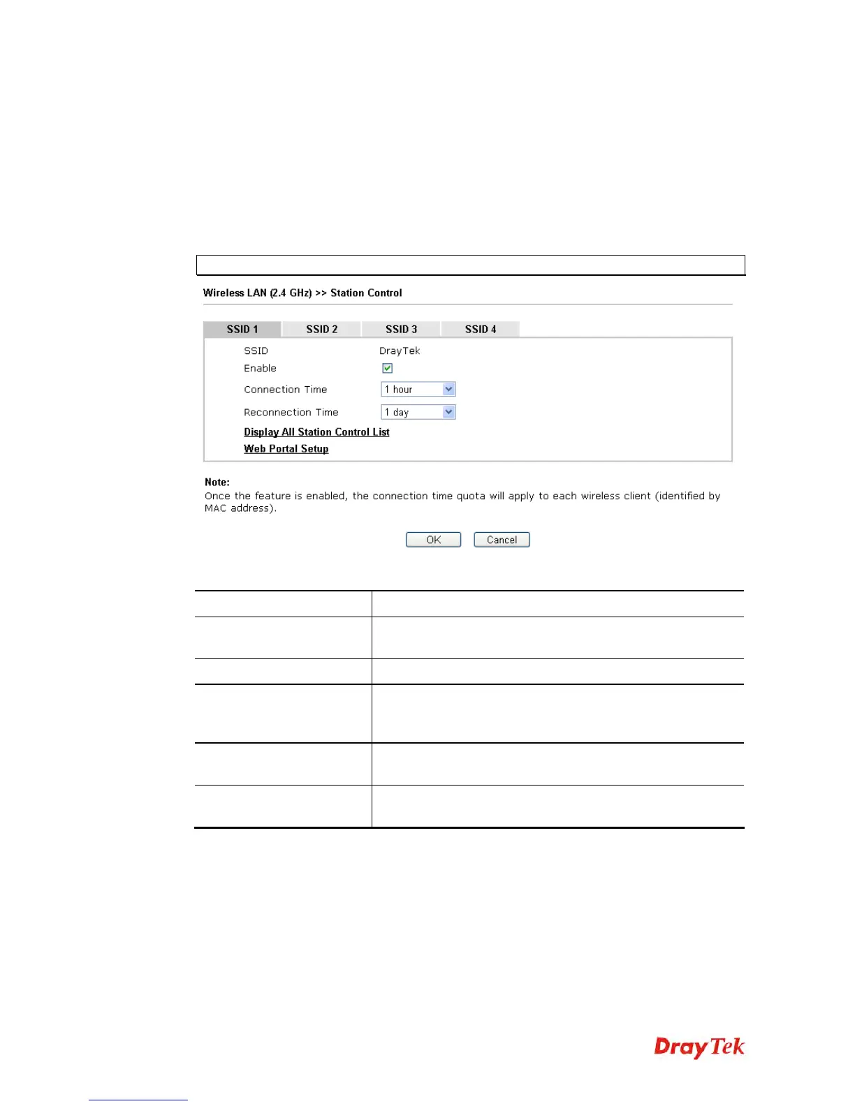 Station Control is used to specify the duration for the wireless client to connect and reconnect